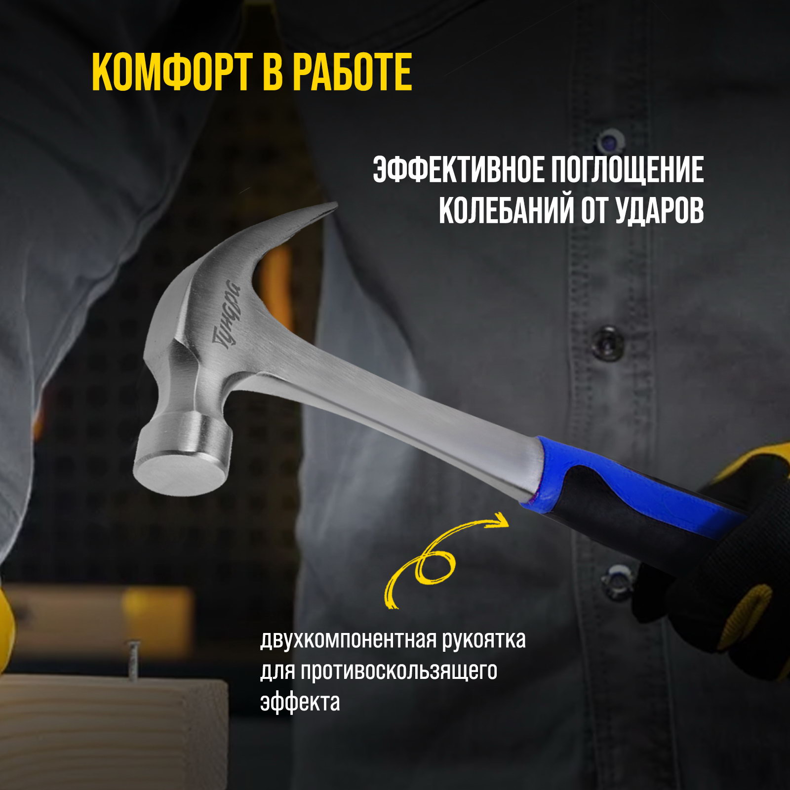 Молоток-гвоздодер цельнокованый, 2К рукоятка, 570 г, ТУНДРА, Китай
