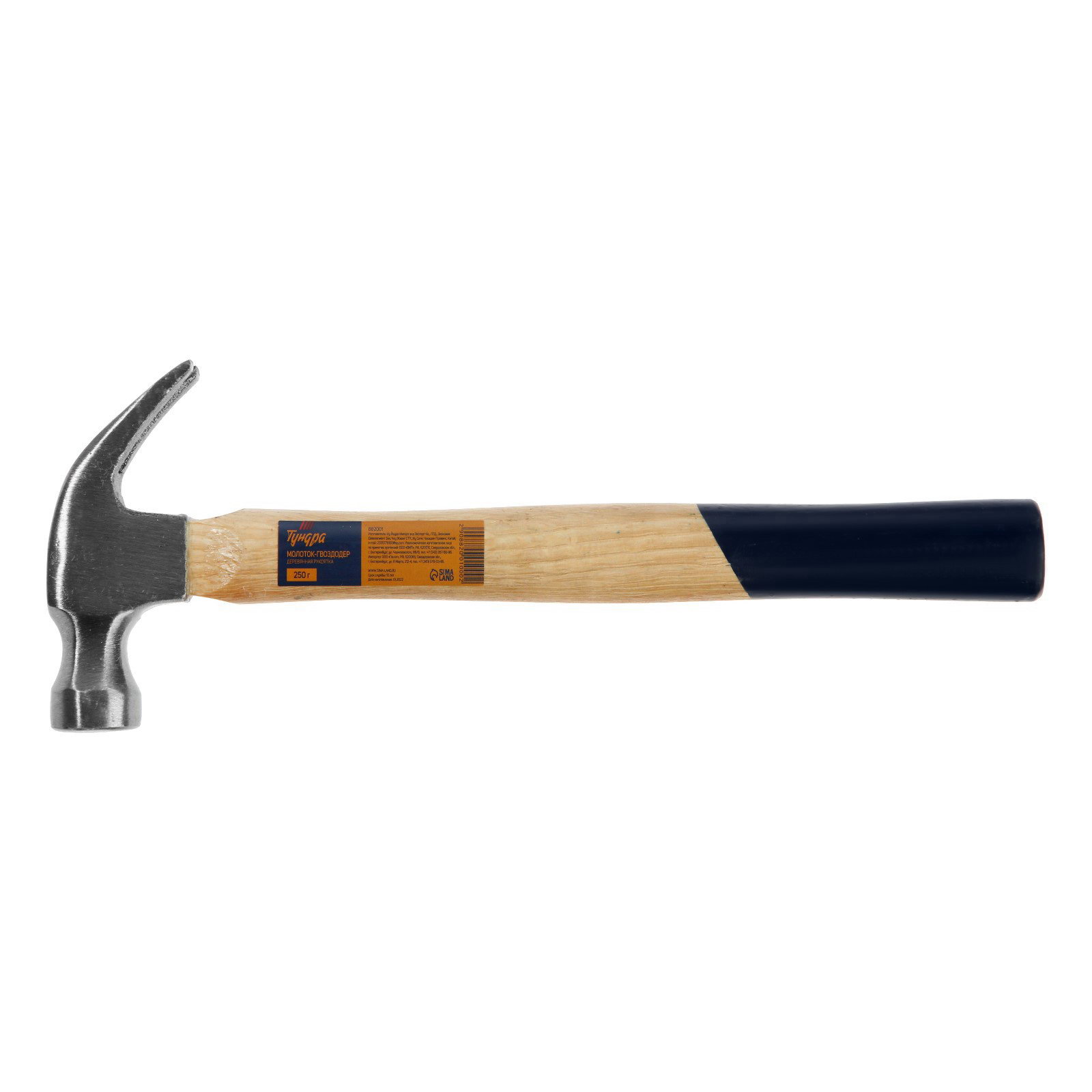 Молоток-гвоздодер деревянная рукоятка, 250 г, 11x29x2.5 см., ТУНДРА, Китай