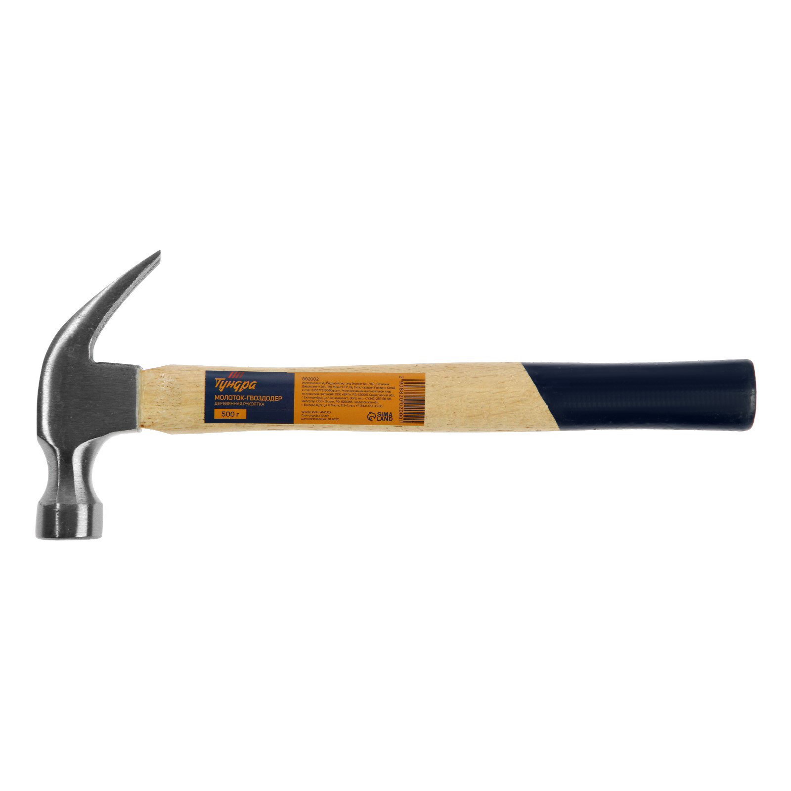 Молоток-гвоздодер деревянная рукоятка, 500 г, 13.5x32x3 см., ТУНДРА, Китай