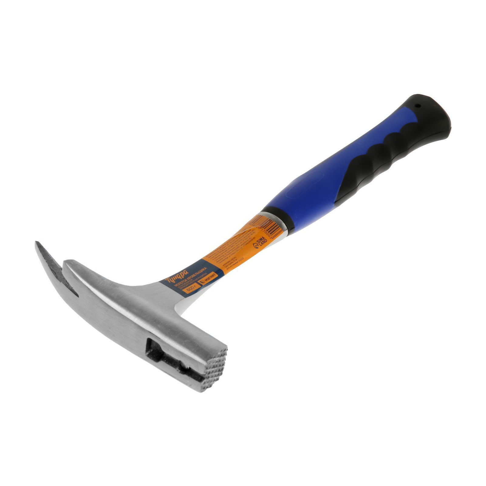 Молоток кровельщика цельнокованый, боек с магнитом, 2К рукоятка, 600 г, 17x33x2.5 см., ТУНДРА, Китай