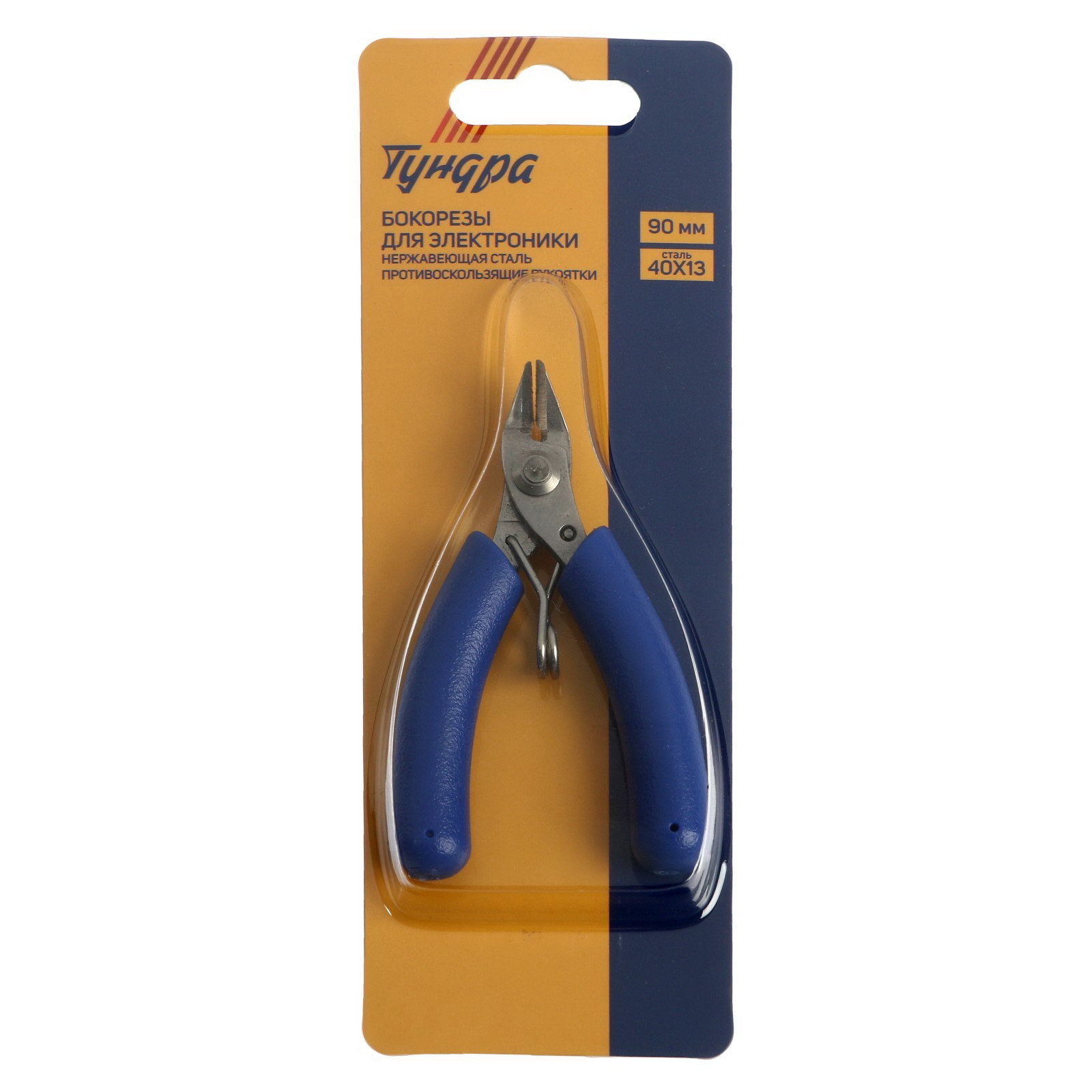 Бокорезы для электроники mini, нерж. сталь, противоскользящие рукоятки, 90 мм, ТУНДРА, Китай