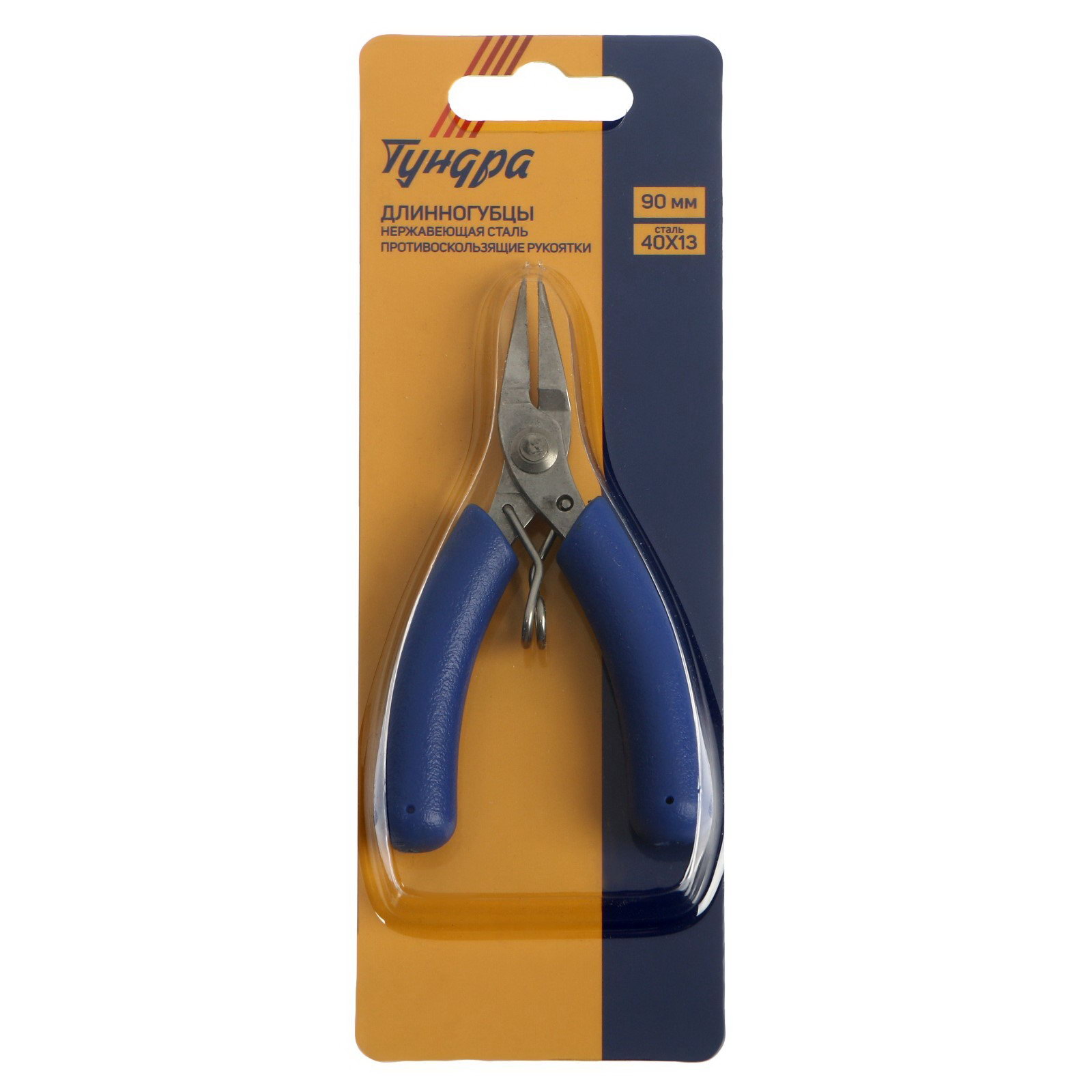 Длинногубцы для электроники, mini, нерж. сталь, противоскользящие рукоятки, 90 мм, ТУНДРА, Китай