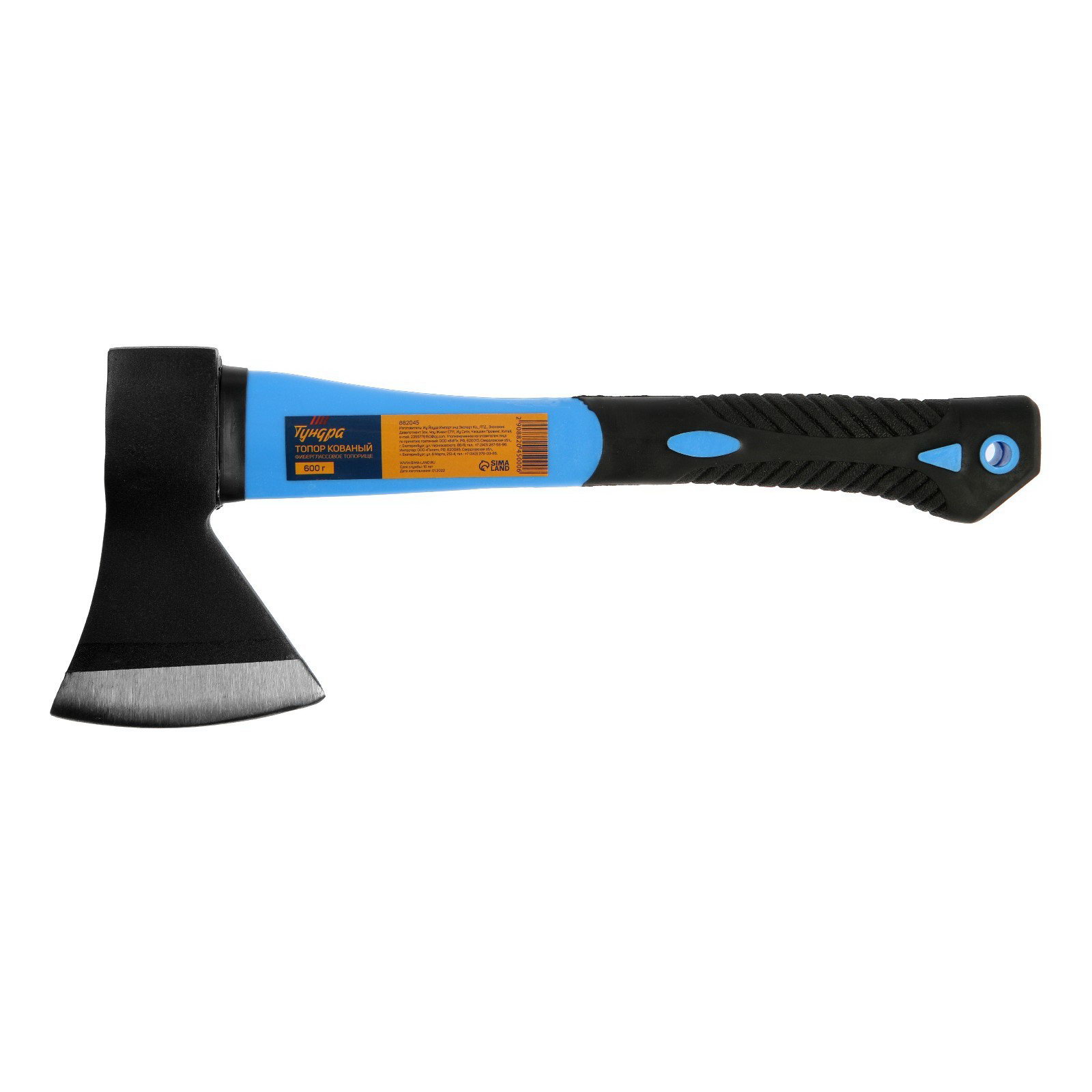 Топор кованый фиберглассовое обрезиненное топорище 36 см, 600 г, 16x37.5x2.5 см., ТУНДРА, Китай