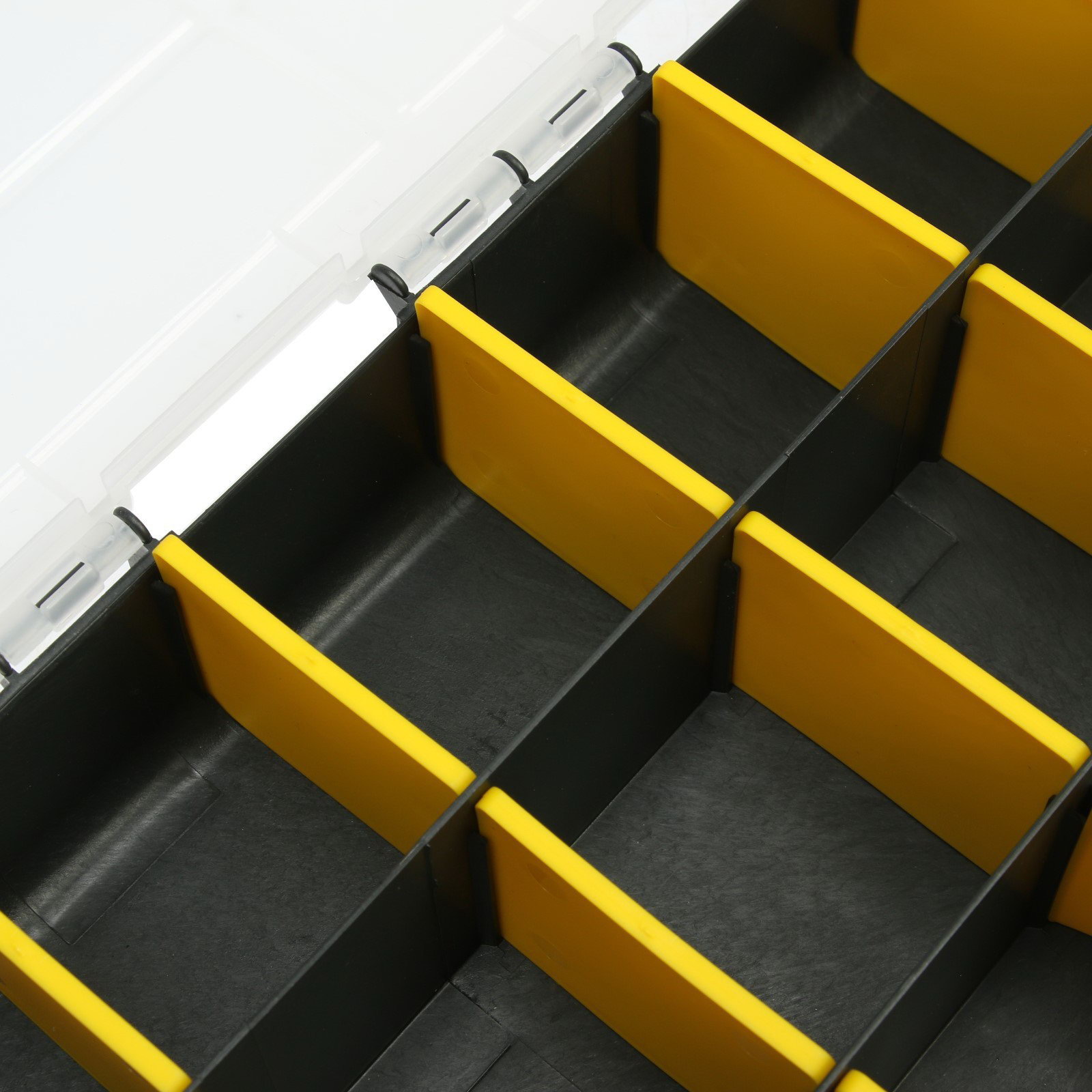 Применение: Для хранения метизов (шурупов, гаек, саморезов), сверл, мелких ручных инструментов. Подходит для домашней мастерской, гаража, рыболовного ящика. Прозрачная крышка позволяет видеть содержимое без открывания. | ||