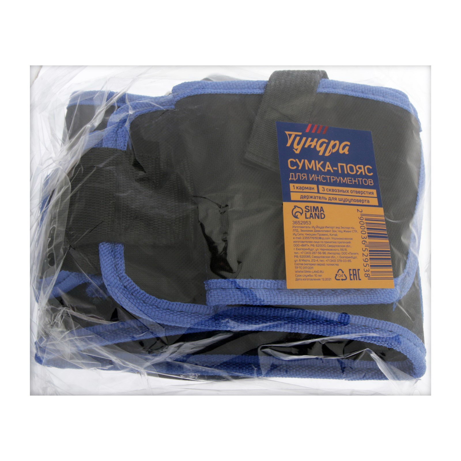 Сумка для инструментов на пояс, 3 петли, карман для оснастки, держатель для дрели, ТУНДРА, Китай