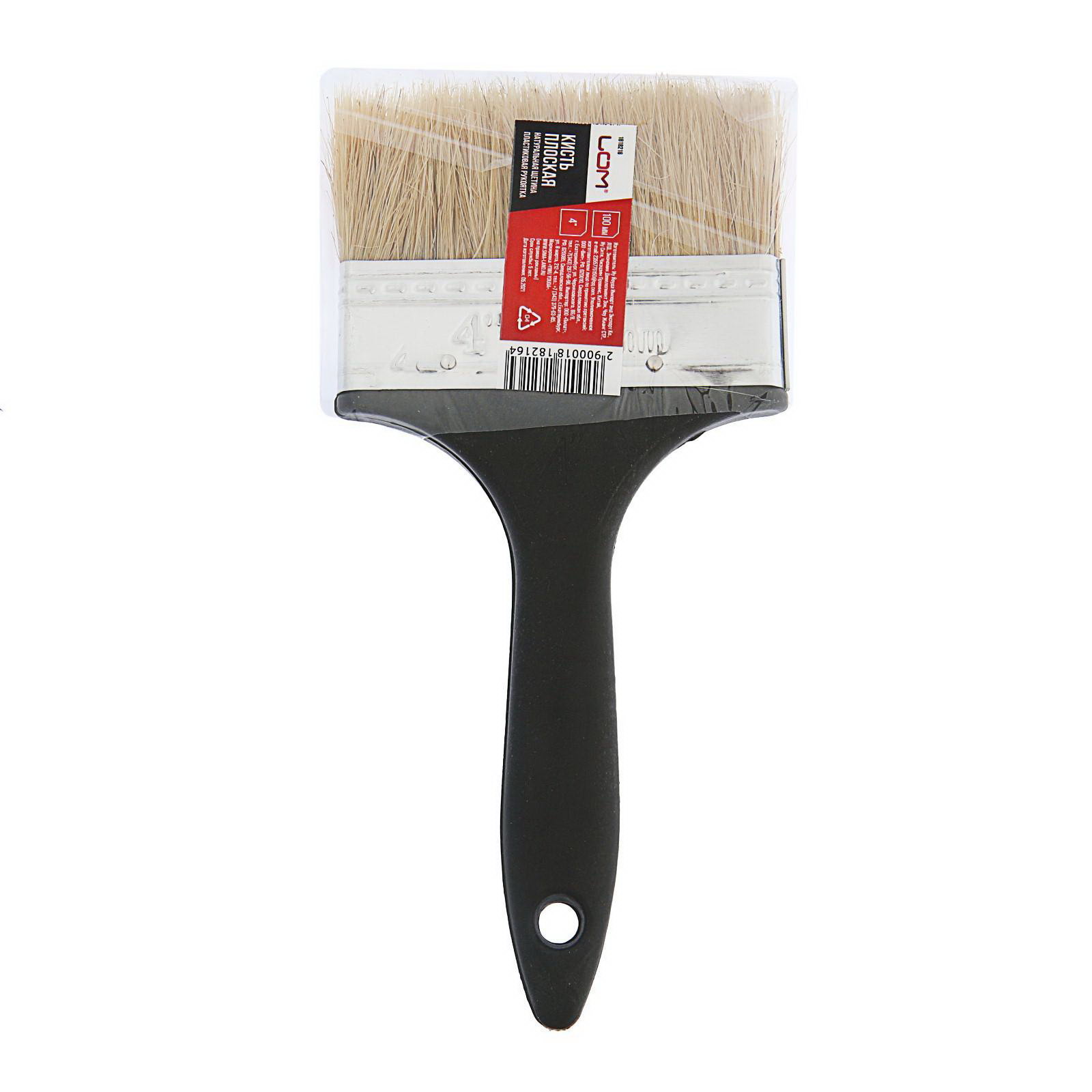 Кисть плоская натуральная щетина, пластиковая рукоятка, 4", 100 мм, ЛОМ, Китай
