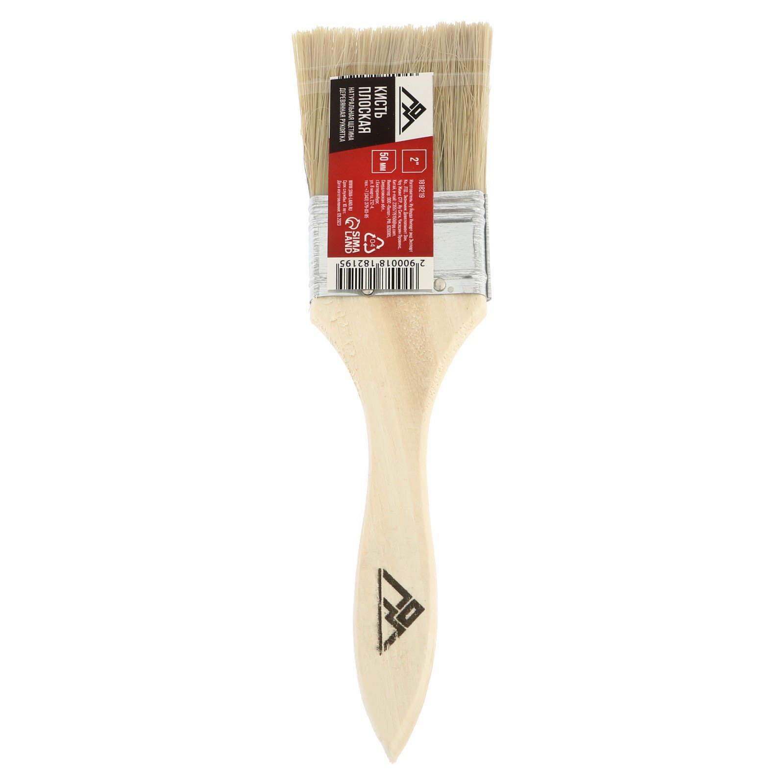 Кисть плоская натуральная щетина, деревянная рукоятка, 2", 50 мм, ЛОМ, Китай