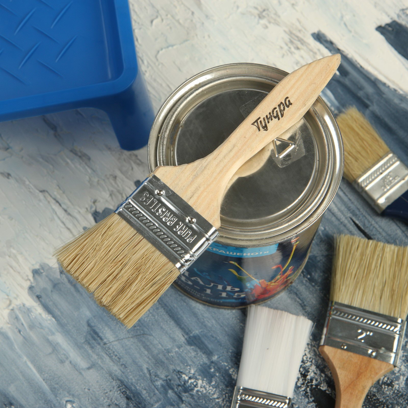 Кисть плоская смешанная щетина, деревянная рукоятка, 2", 50 мм, ТУНДРА, Китай