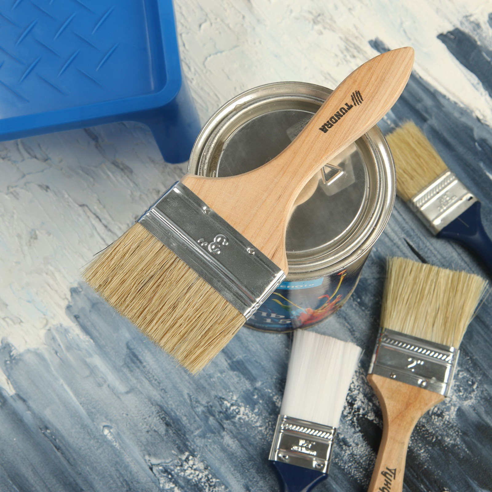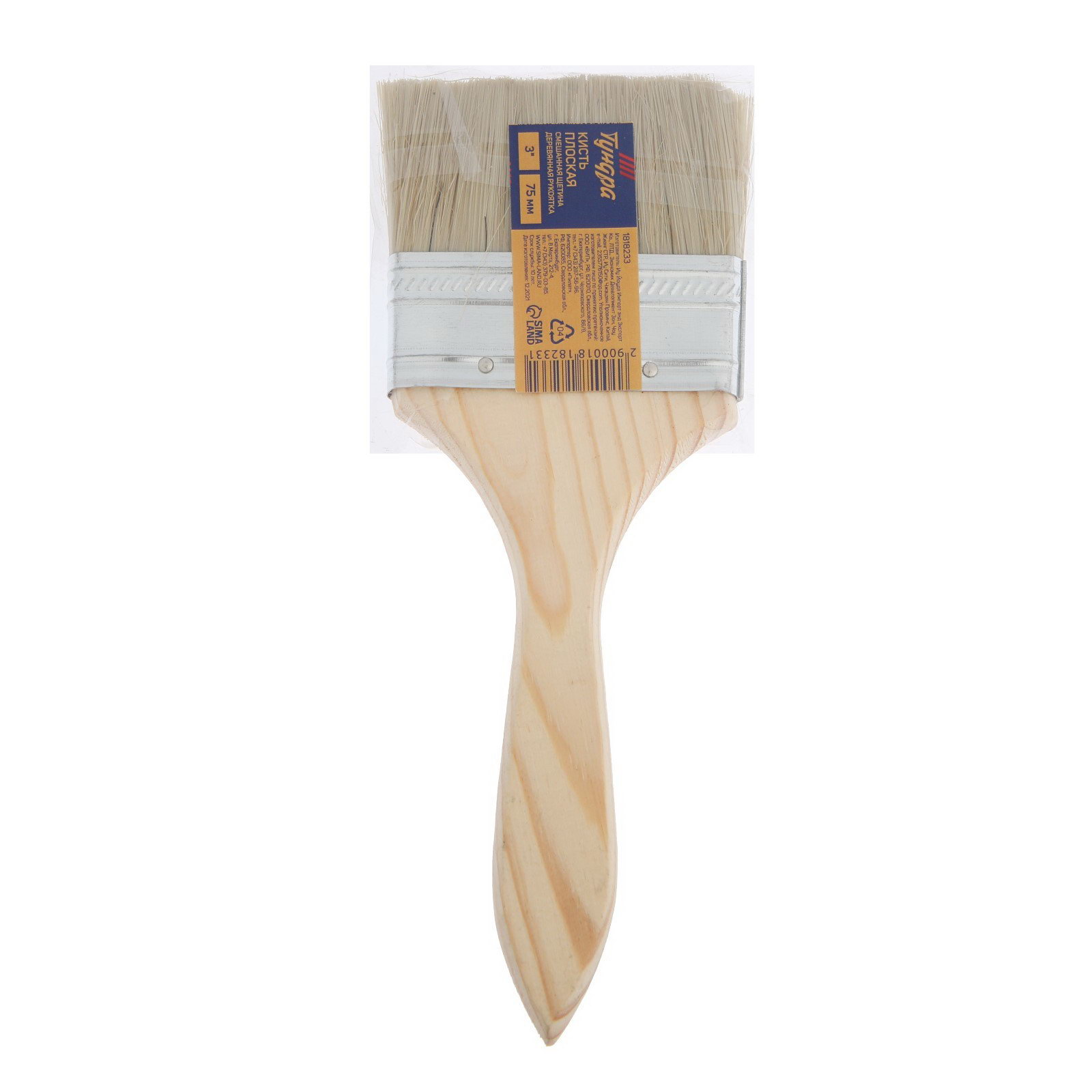 Кисть плоская смешанная щетина, деревянная рукоятка, 3", 75 мм, ТУНДРА, Китай