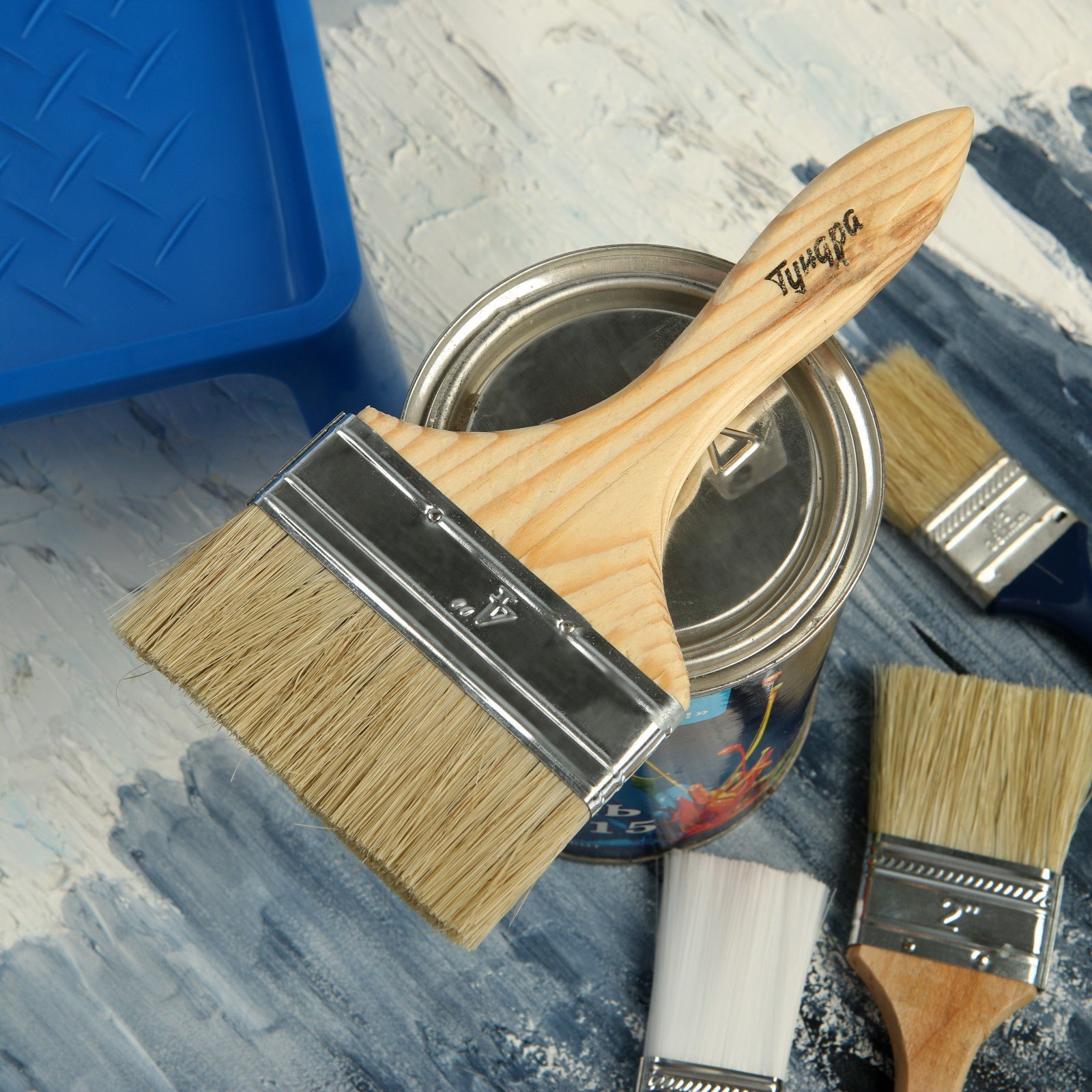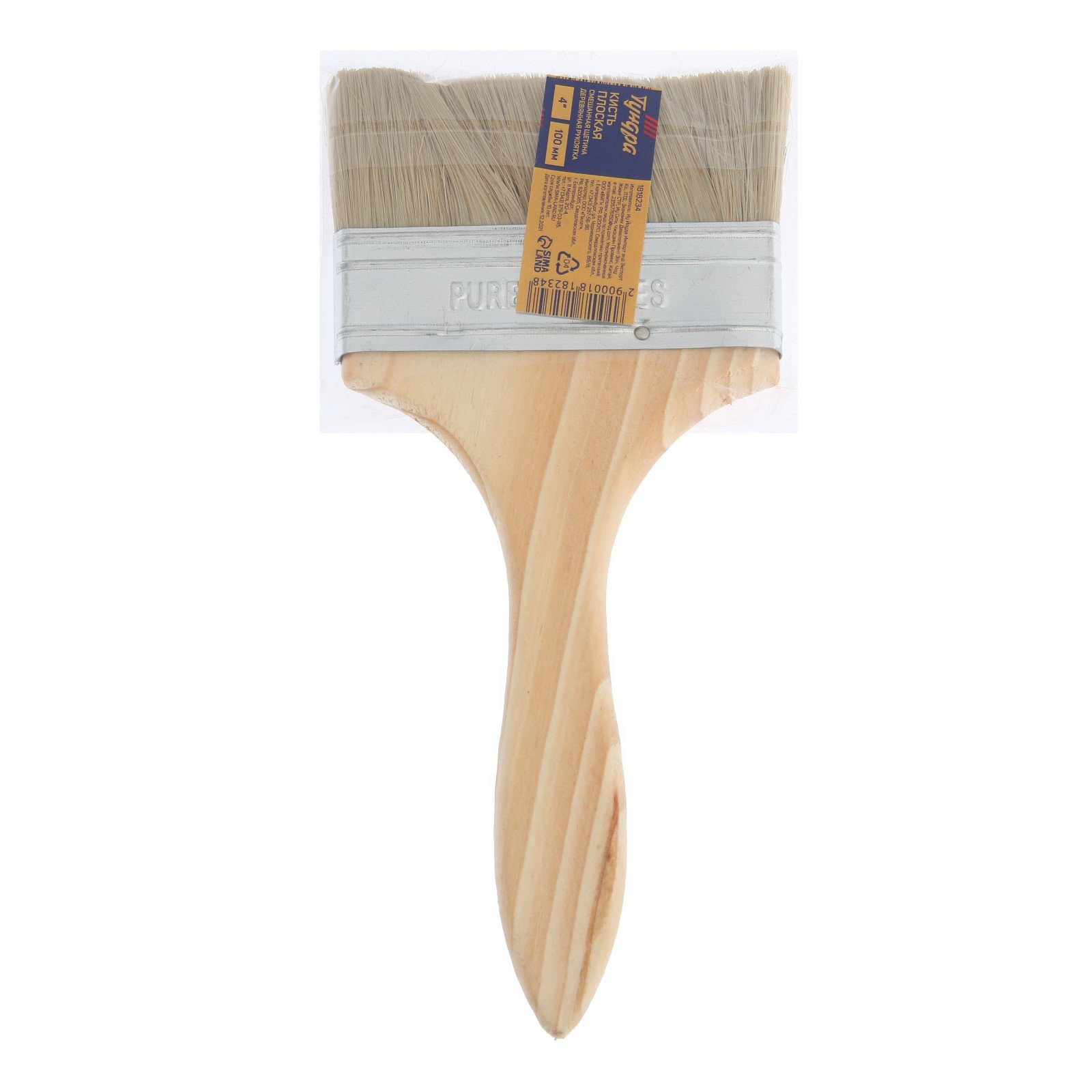 Кисть плоская смешанная щетина, деревянная рукоятка, 4", 100 мм, ТУНДРА, Китай