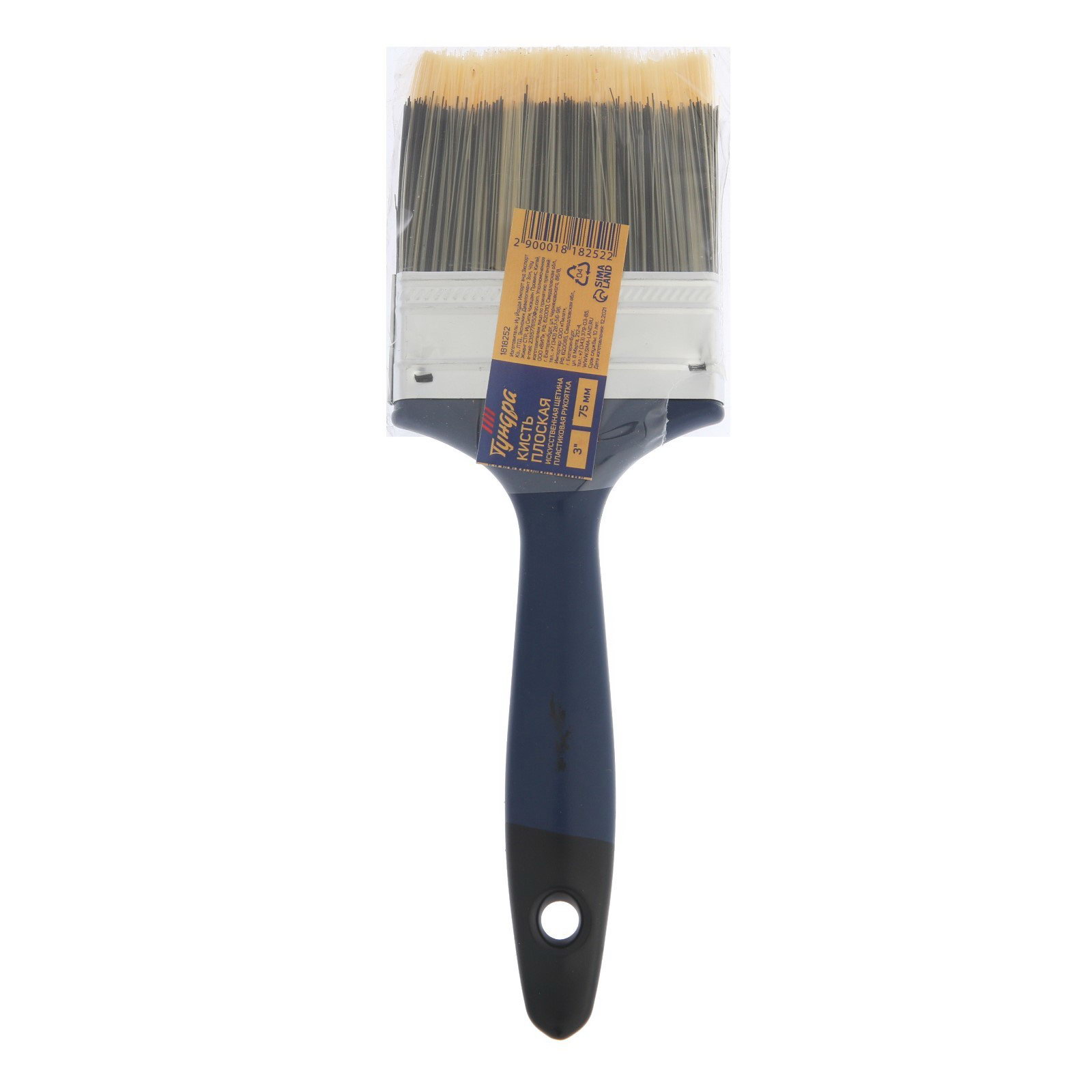 Кисть плоская искусственная щетина, пластиковая рукоятка, 3", 75 мм, ТУНДРА, Китай