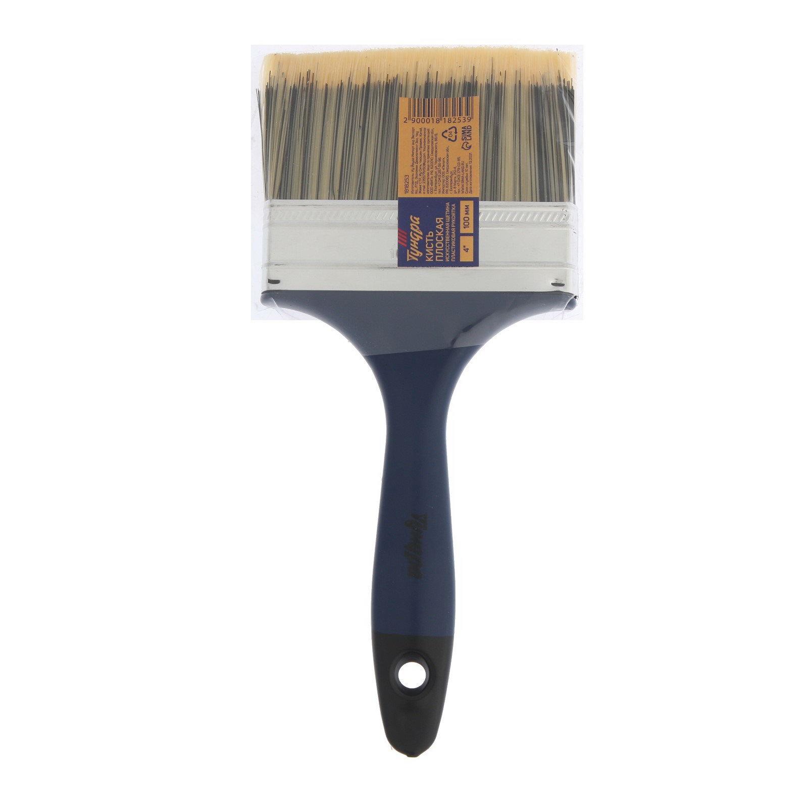 Кисть плоская искусственная щетина, пластиковая рукоятка, 4", 100 мм, ТУНДРА, Китай