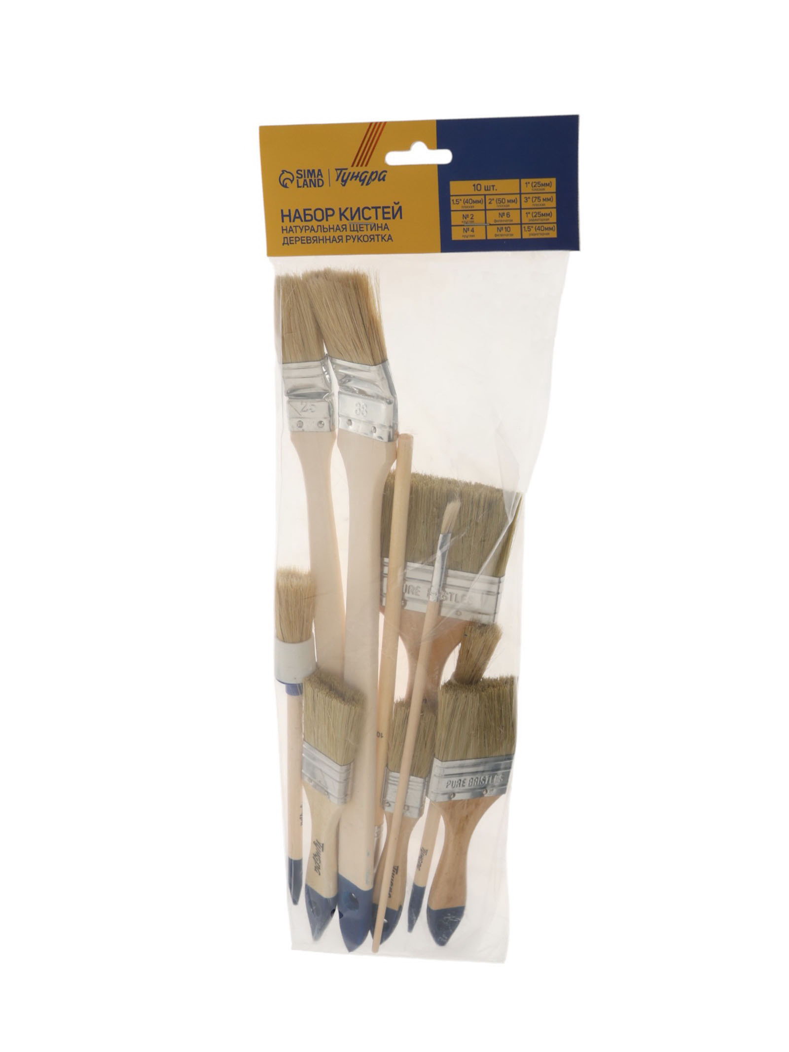Набор кистей плоские, круглые, радиаторные, для масляной краски, 10 шт., ТУНДРА, Китай