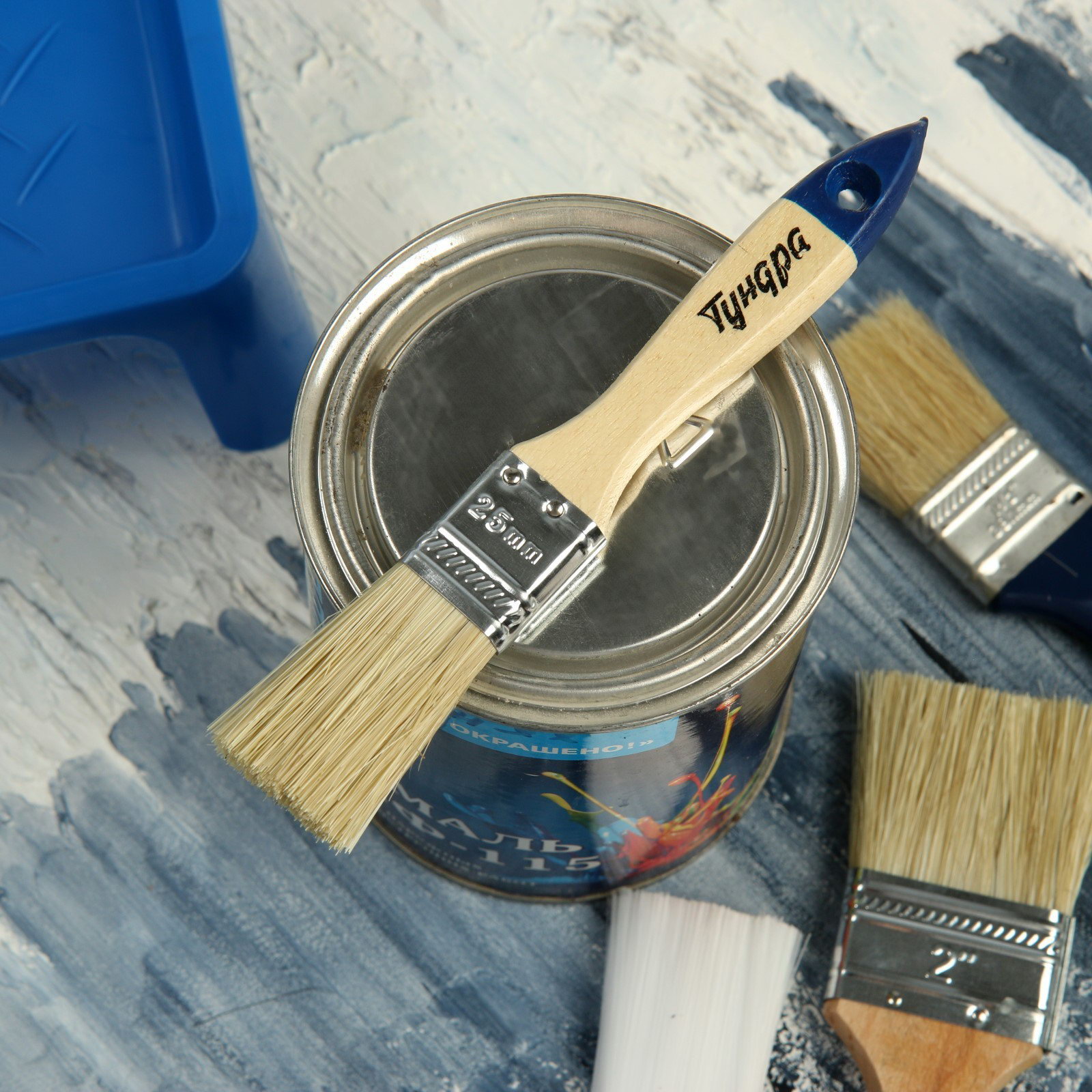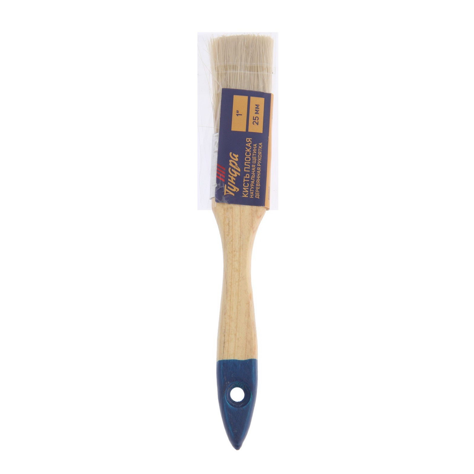 Кисть плоская натуральная щетина, деревянная рукоятка, 1", 25 мм, ТУНДРА, Китай