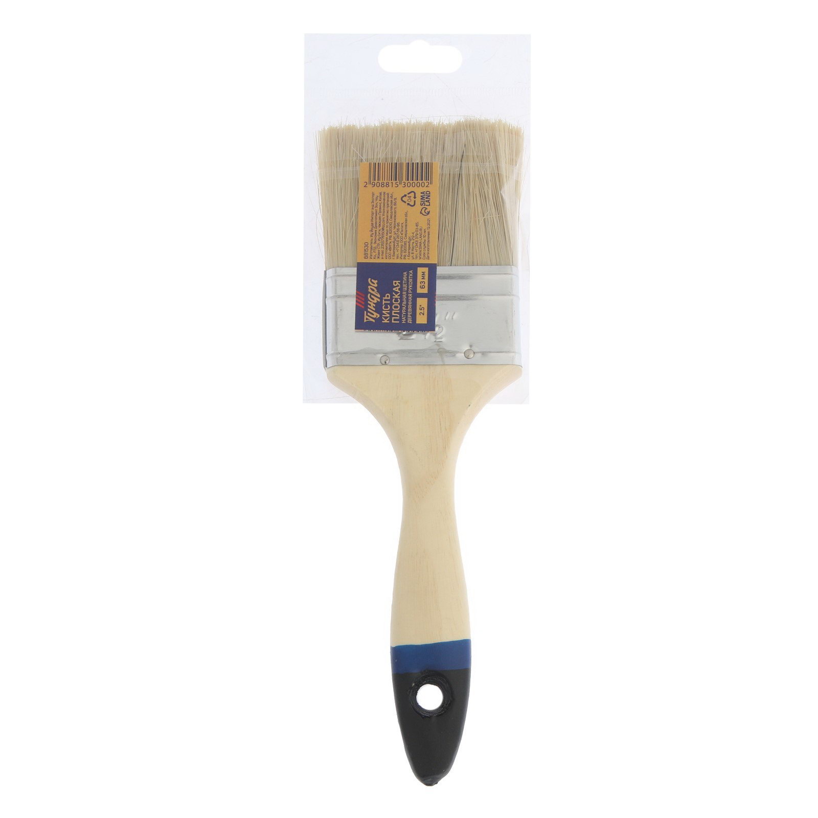 Кисть плоская натуральная щетина, деревянная рукоятка, 2.5", 63 мм, ТУНДРА, Китай