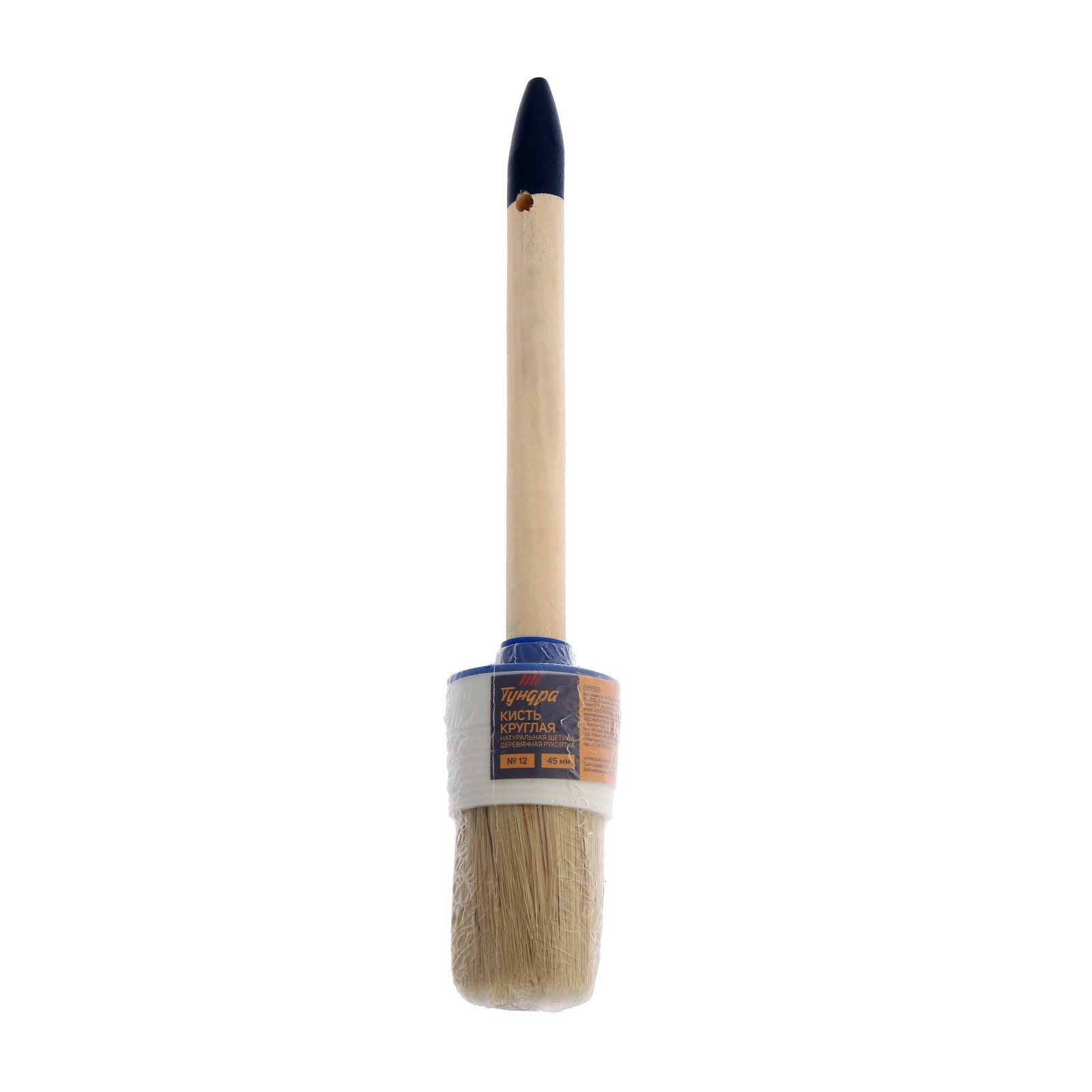 Кисть круглая натуральная щетина, деревянная рукоятка, № 12, 45 мм, 450 см., ТУНДРА, Китай