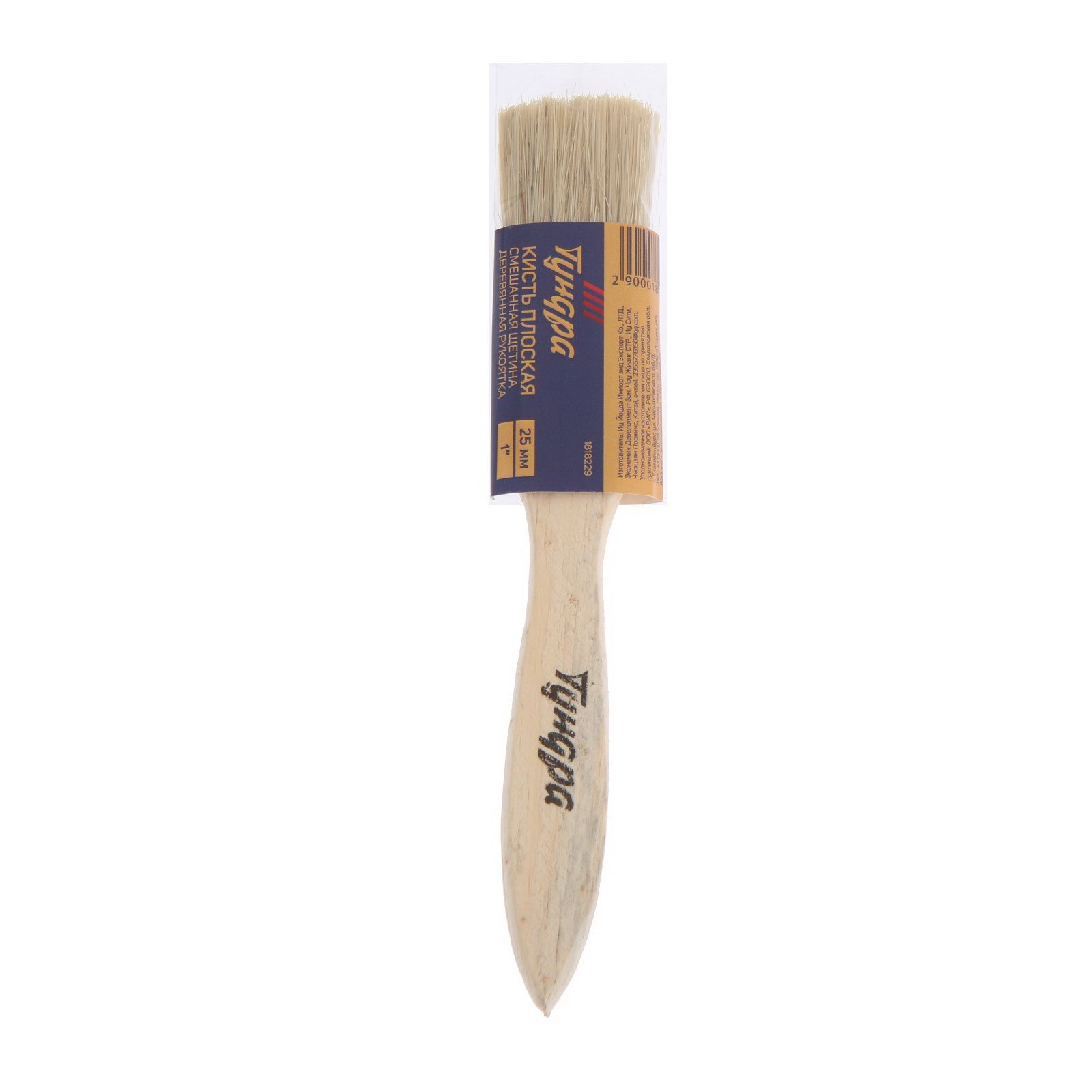 Кисть плоская смешанная щетина, деревянная рукоятка, 1", 25 мм, ТУНДРА, Китай