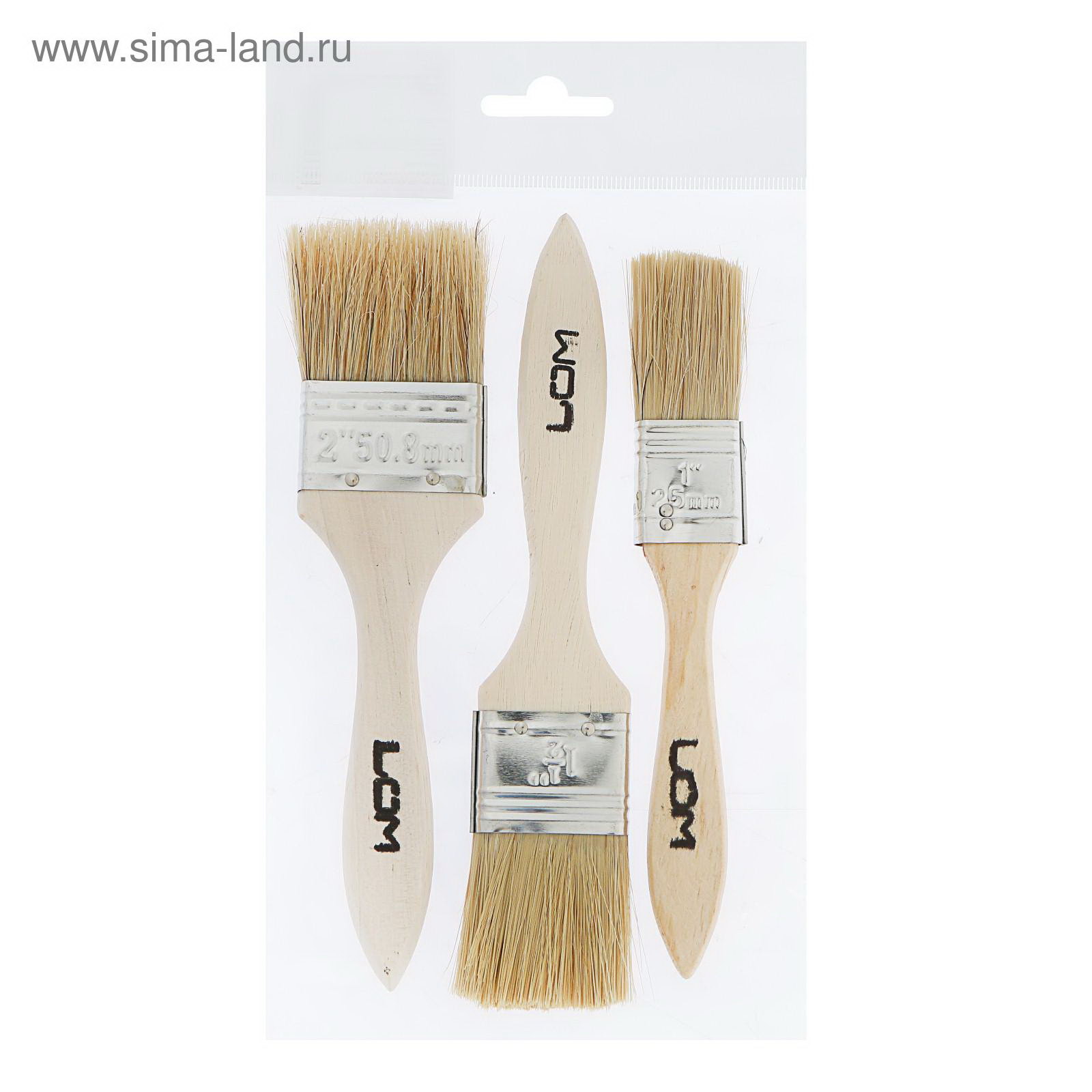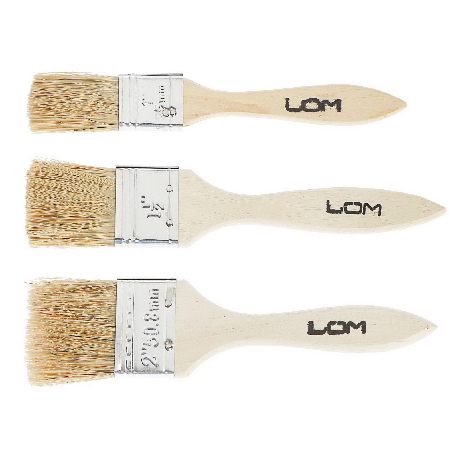 Набор кистей натуральная щетина, деревянная рукоятка, 1-1.5-2", 25, 38, 50 мм, ЛОМ, Китай