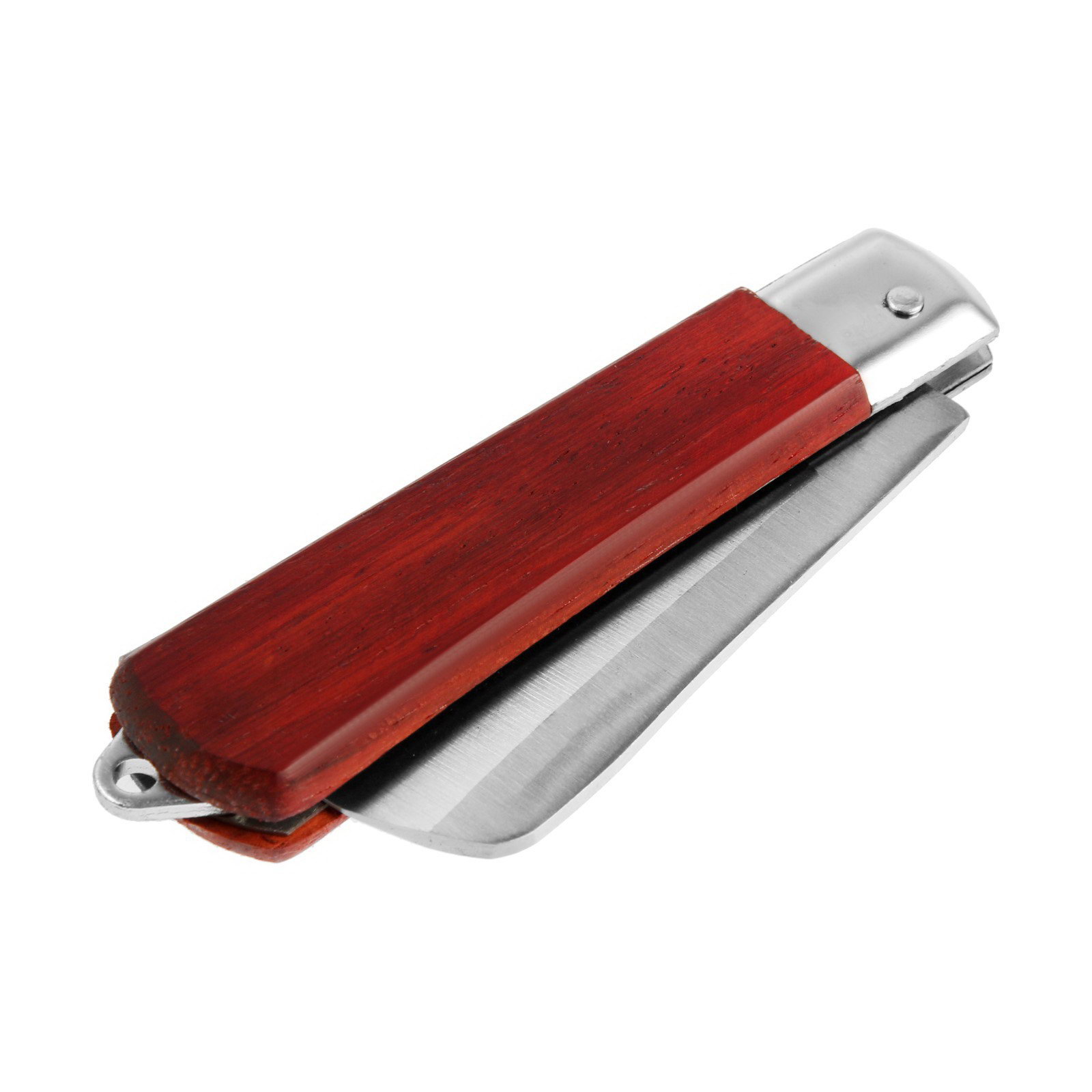 Нож универсальный складной деревянная рукоятка, прямое лезвие, нержавеющая сталь, ТУНДРА, Китай