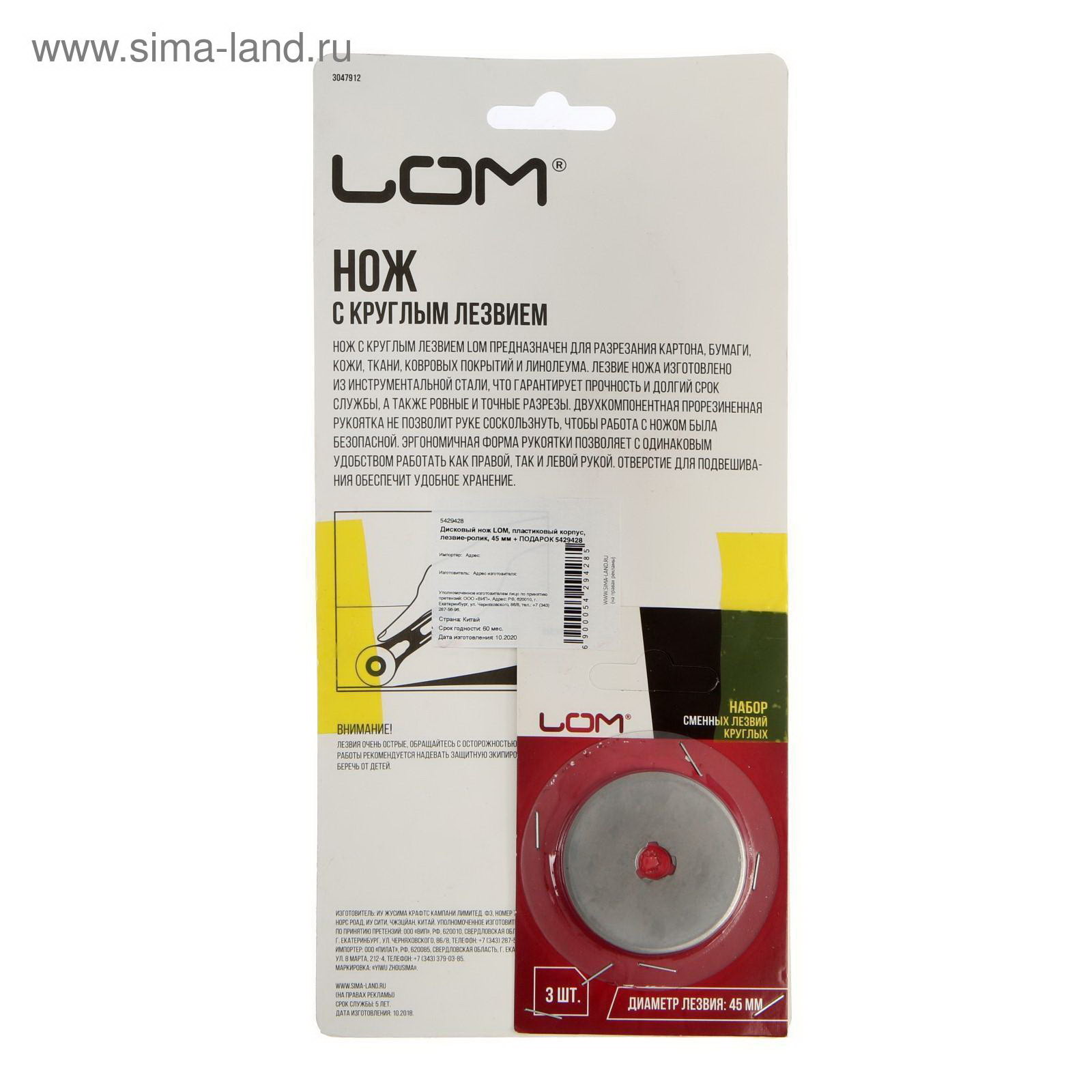Размер упаковки: 11.5 x 3.5 x 24 см. tnved: 8211920000 Температурное ограничение: Нет Ширина лезвия: 45 Тип ножа: Роликовый Материал рукоятки: Пластик Точный рез без усилий! Роликовый нож ЛОМ 45 мм с запасными лезвиями это специализированный инструмент для раскроя мягких материалов. Вращающееся лезвие точно режет без необходимости прилагать значительное усилие.