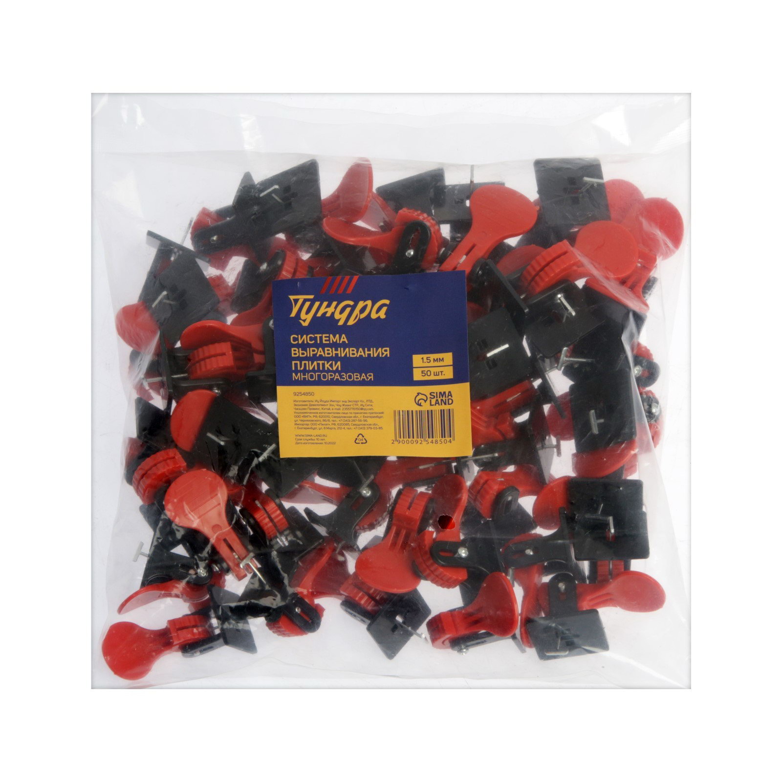 Система выравнивания плитки многоразовая, 1.5 мм, 50 штук, ТУНДРА, Китай