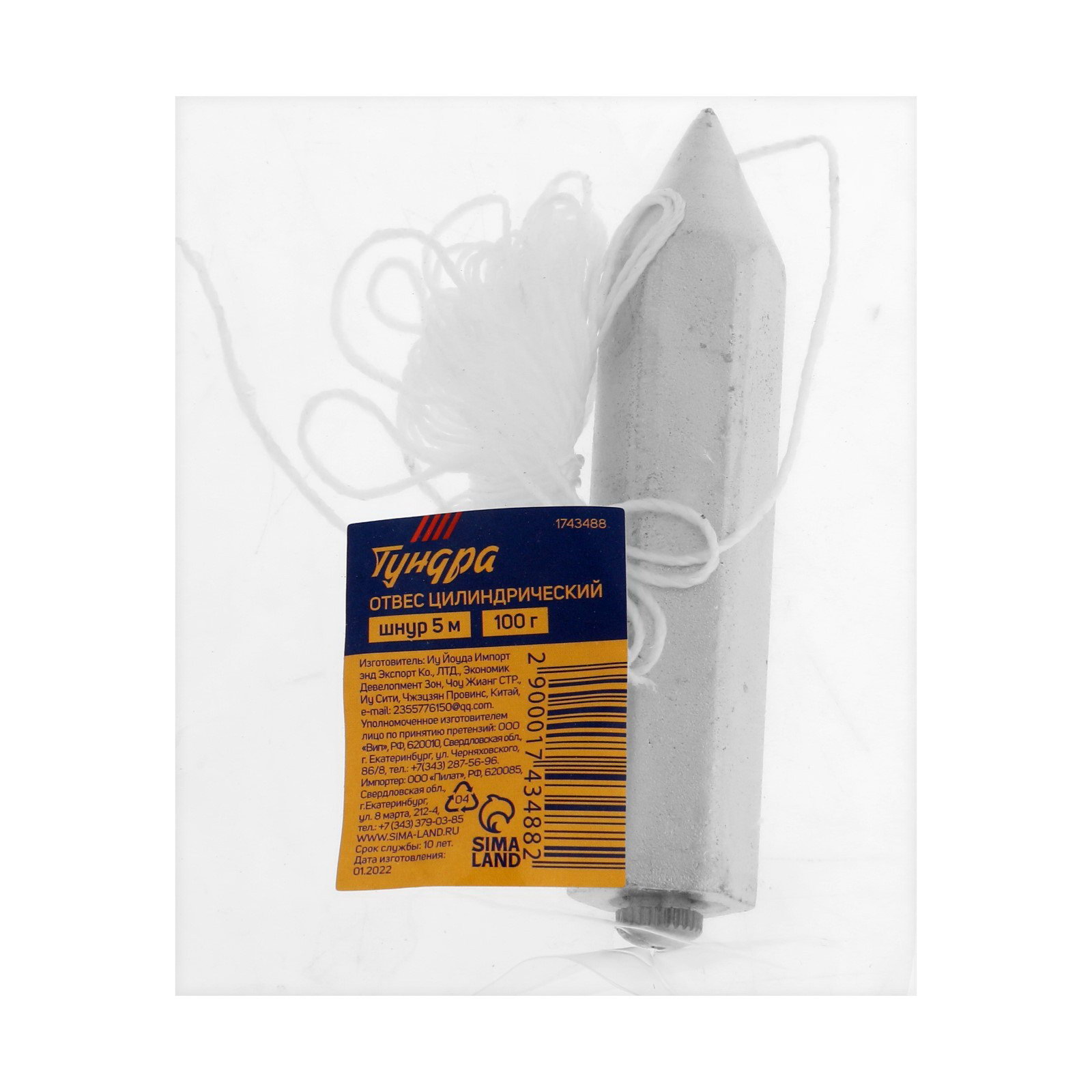 Отвес цилиндрический шнур 5 метров, 100 г, ТУНДРА, Китай
