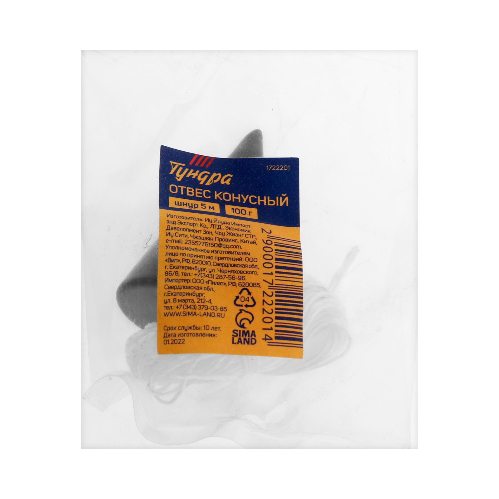 Отвес конусный шнур 5 метров, 100 г, ТУНДРА, Китай