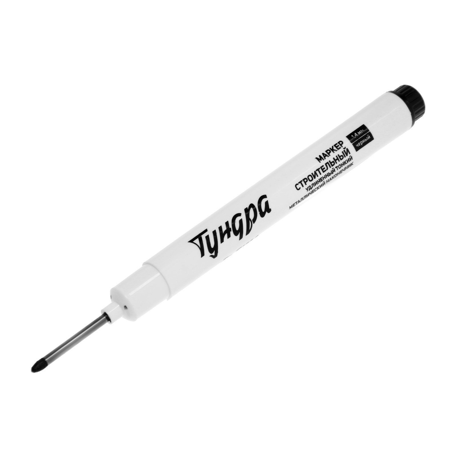Маркер строительный удлиненный тонкий металлический наконечник, черный, 1.4 мм, ТУНДРА, Китай