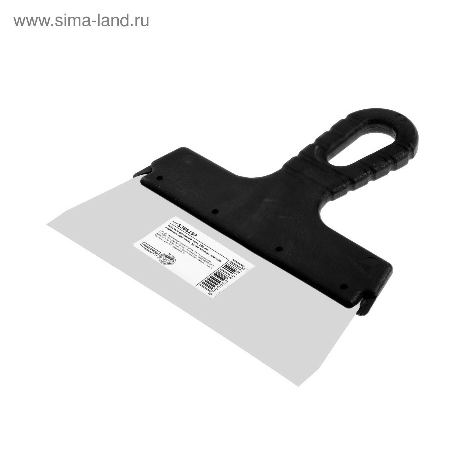Шпатель фасадный 200 мм, нержавеющая сталь, пластиковая рукоятка, ЛОМ, Россия