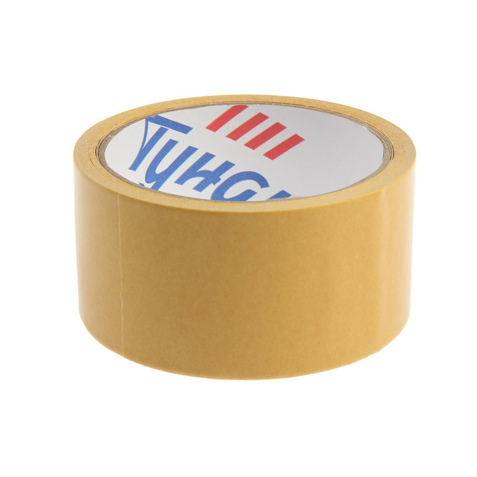 Лента двусторонняя клейкая, полипропиленовая, белая основа, 90 мкм, 48 мм x 10 м, ТУНДРА, Россия