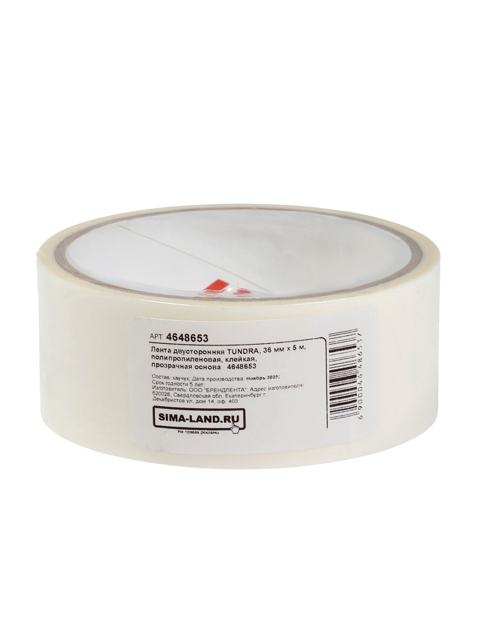 Лента двусторонняя полипропиленовая, прозрачная основа, 90 мкм, 36 мм x 5 м, ТУНДРА, Россия