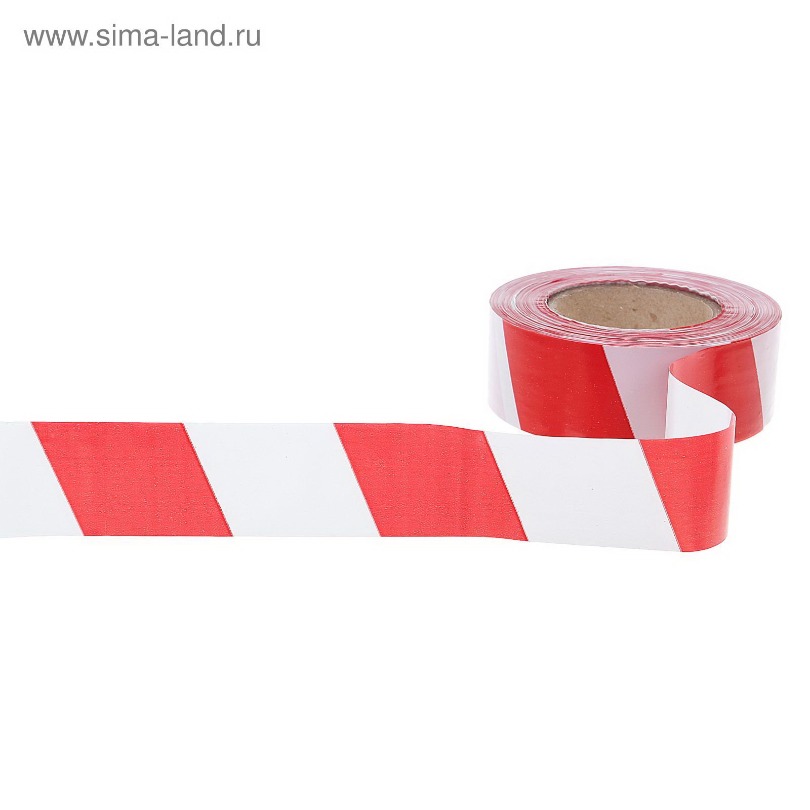 Лента сигнальная "Оградительная", 200 м, ширина 5 см, толщина 50 мкм, красная, белая, 10.5x17x3 см., Россия