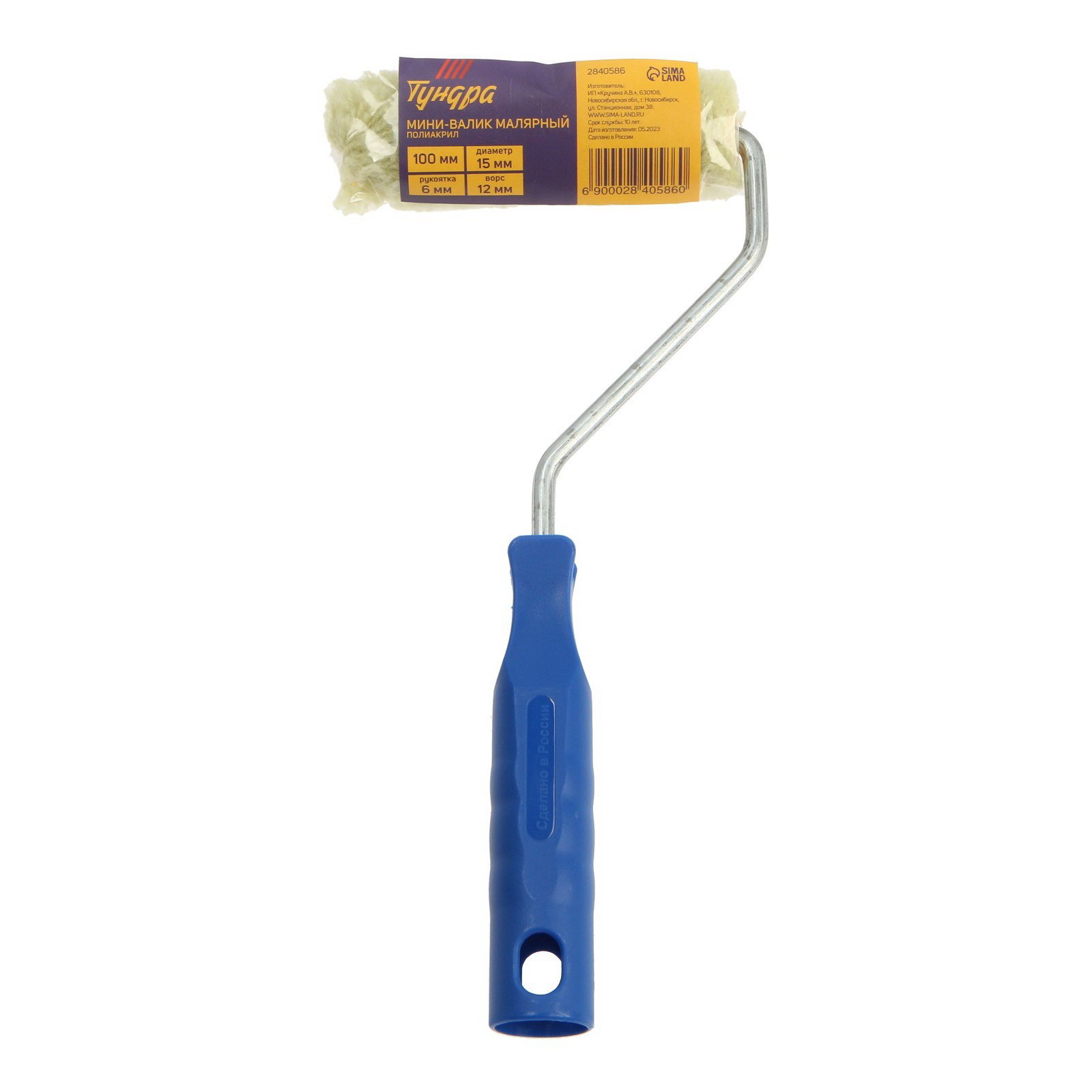 Мини-валик полиакрил, 100 мм, рукоятка d=6 мм, d=15 мм, ворс 12 мм, зеленый, ТУНДРА, Россия