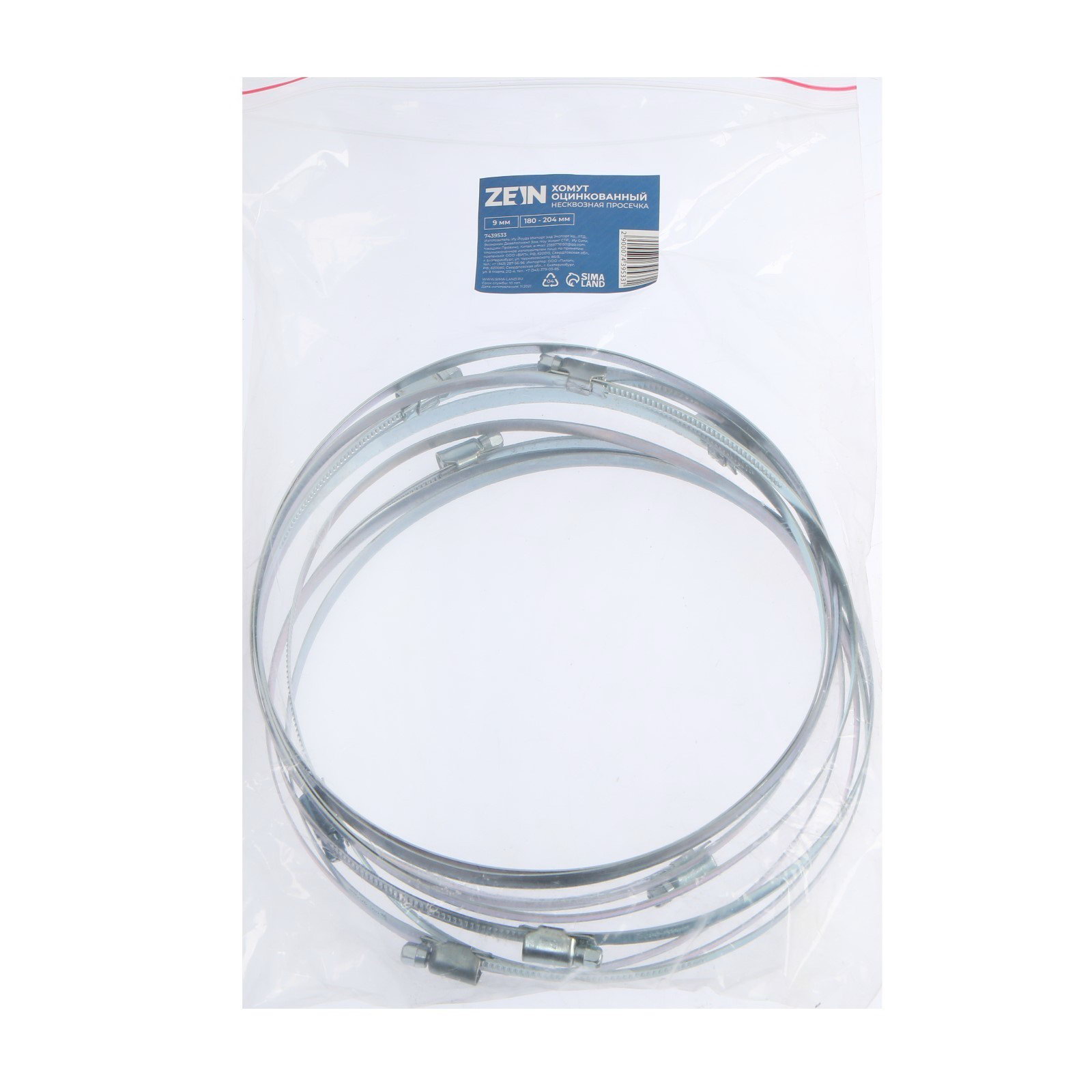 Хомут червячный engr, несквозная просечка, диаметр 180-204 мм, ширина 9мм, оцинкованный, 0.9x18x0.9 см., ZEIN, Китай