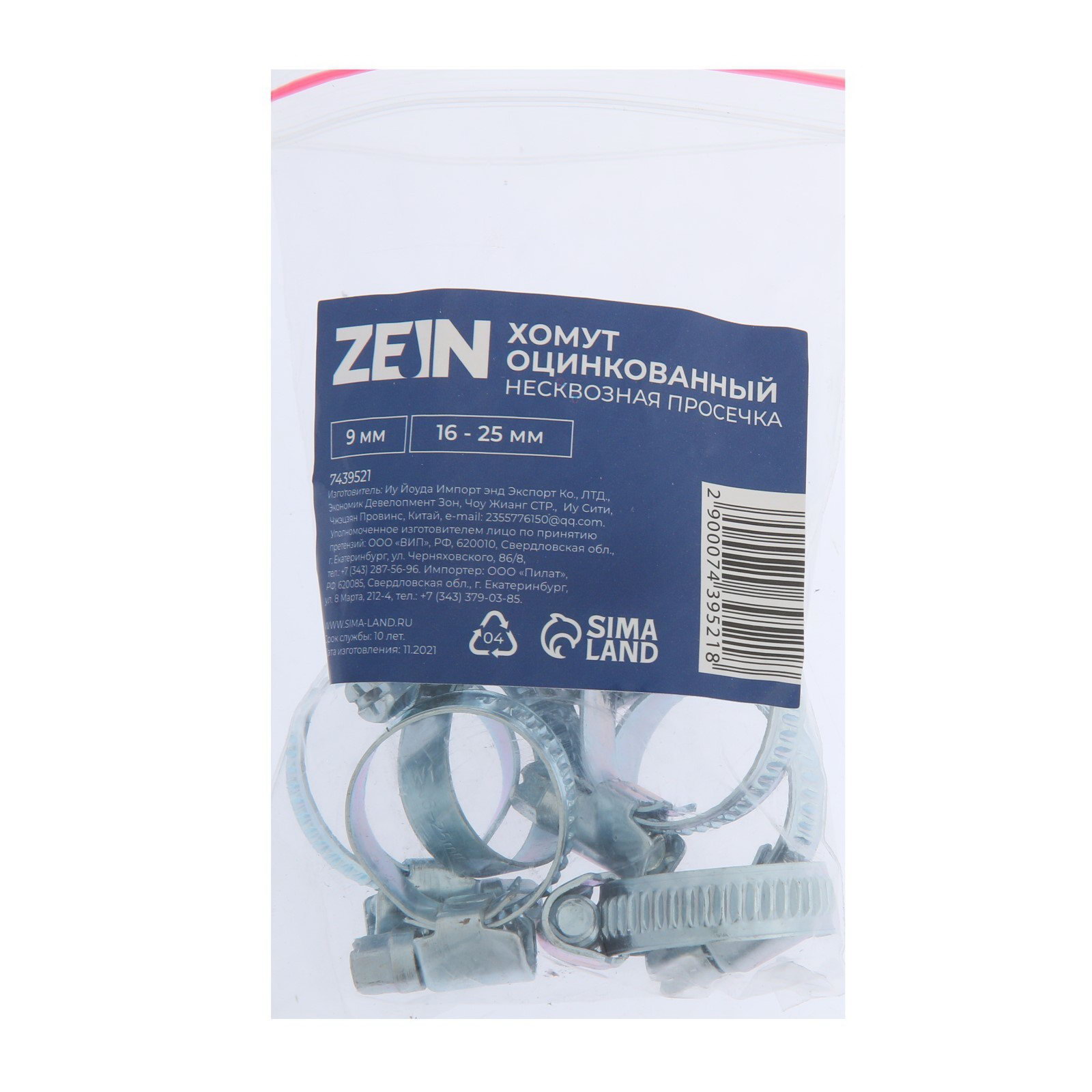 Хомут червячный engr, несквозная просечка, диаметр 16-25 мм, ширина 9 мм, оцинкованный, 0.9x1.6x0.9 см., ZEIN, Китай