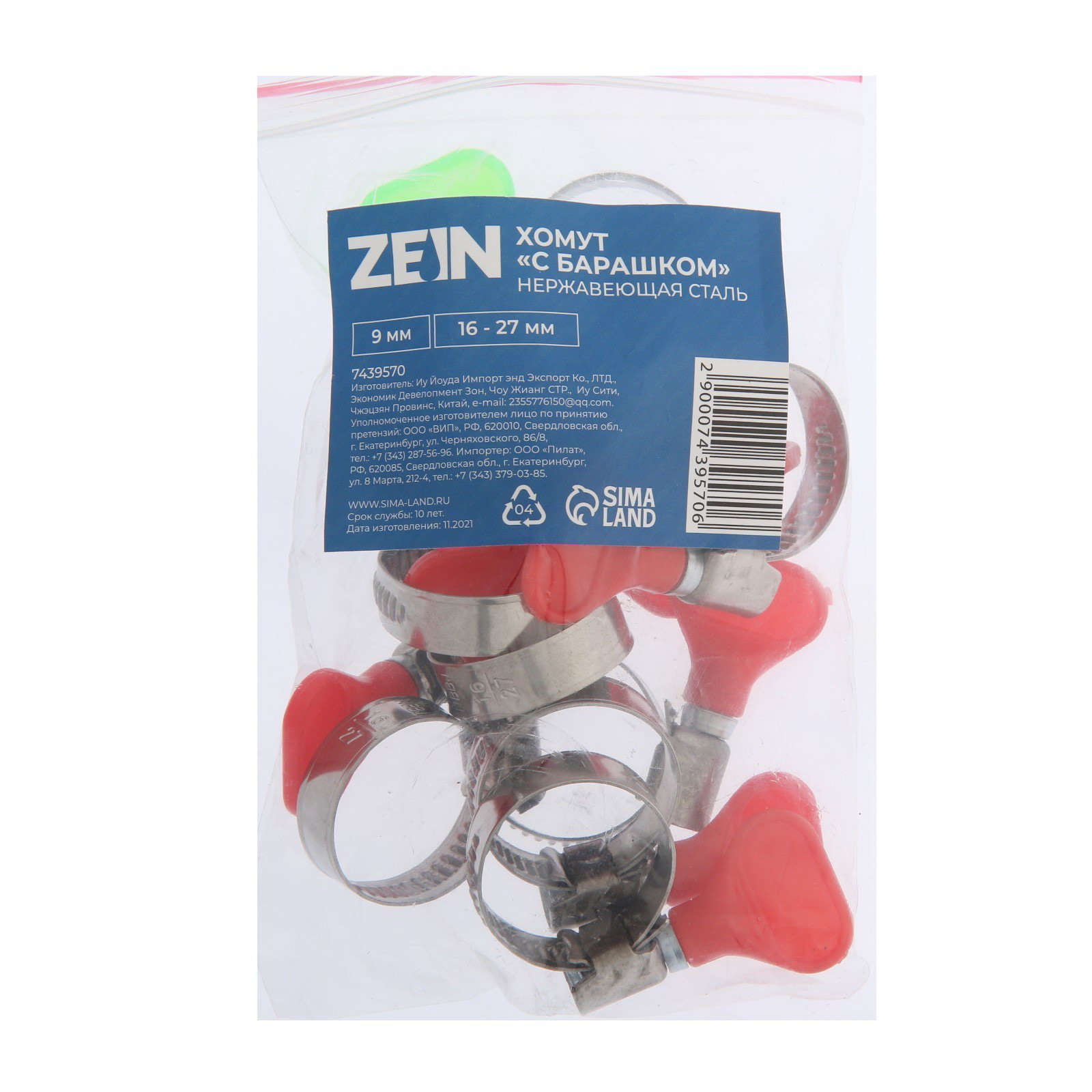 Хомут с "Барашком" engr, диаметр 16-27 мм, ширина 9 мм, нержавеющая сталь, 0.9x1.6x0.9 см., ZEIN, Китай
