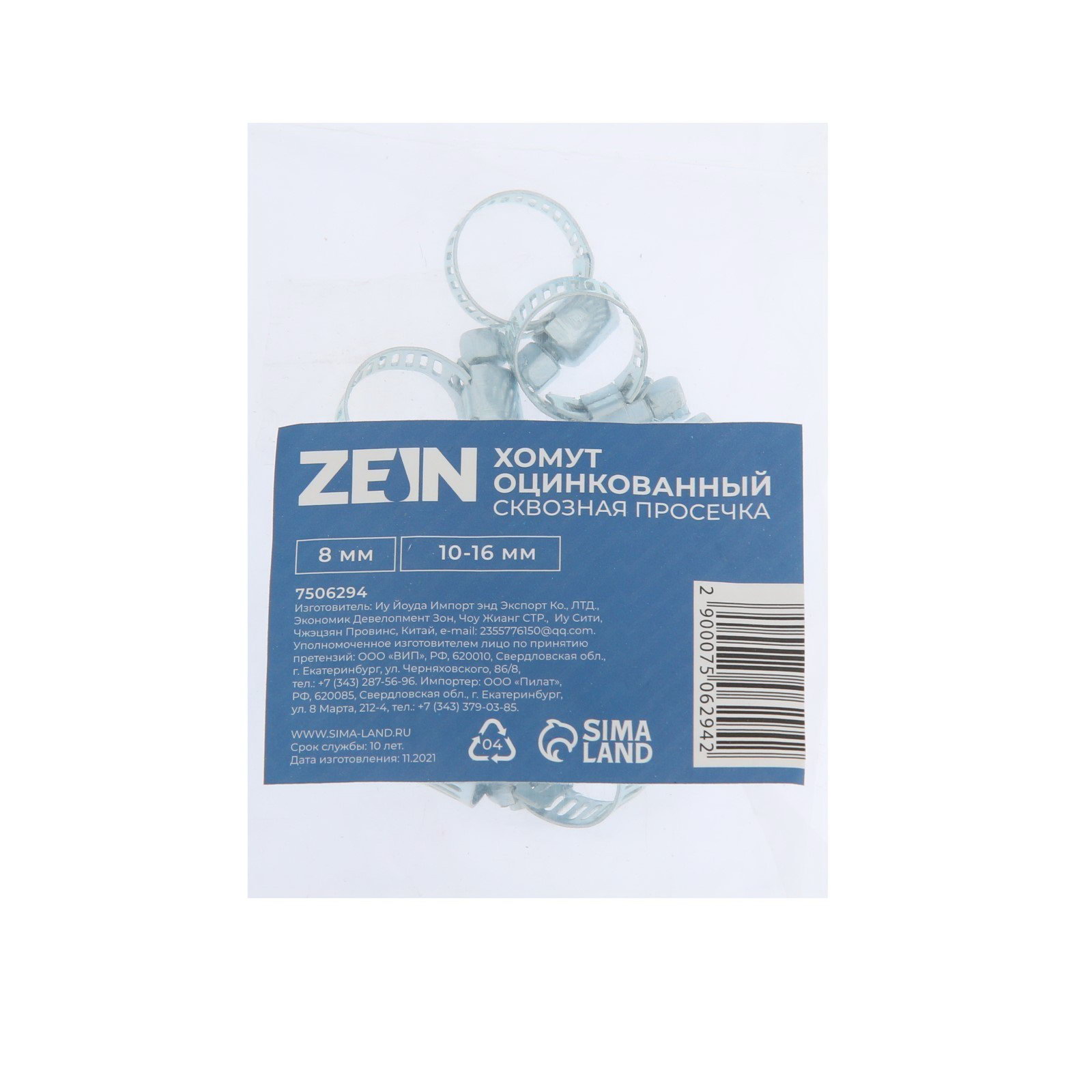 Хомут червячный engr, сквозная просечка, диаметр 10-16 мм, ширина 8 мм, оцинкованный, 0.8x1x0.8 см., ZEIN, Китай