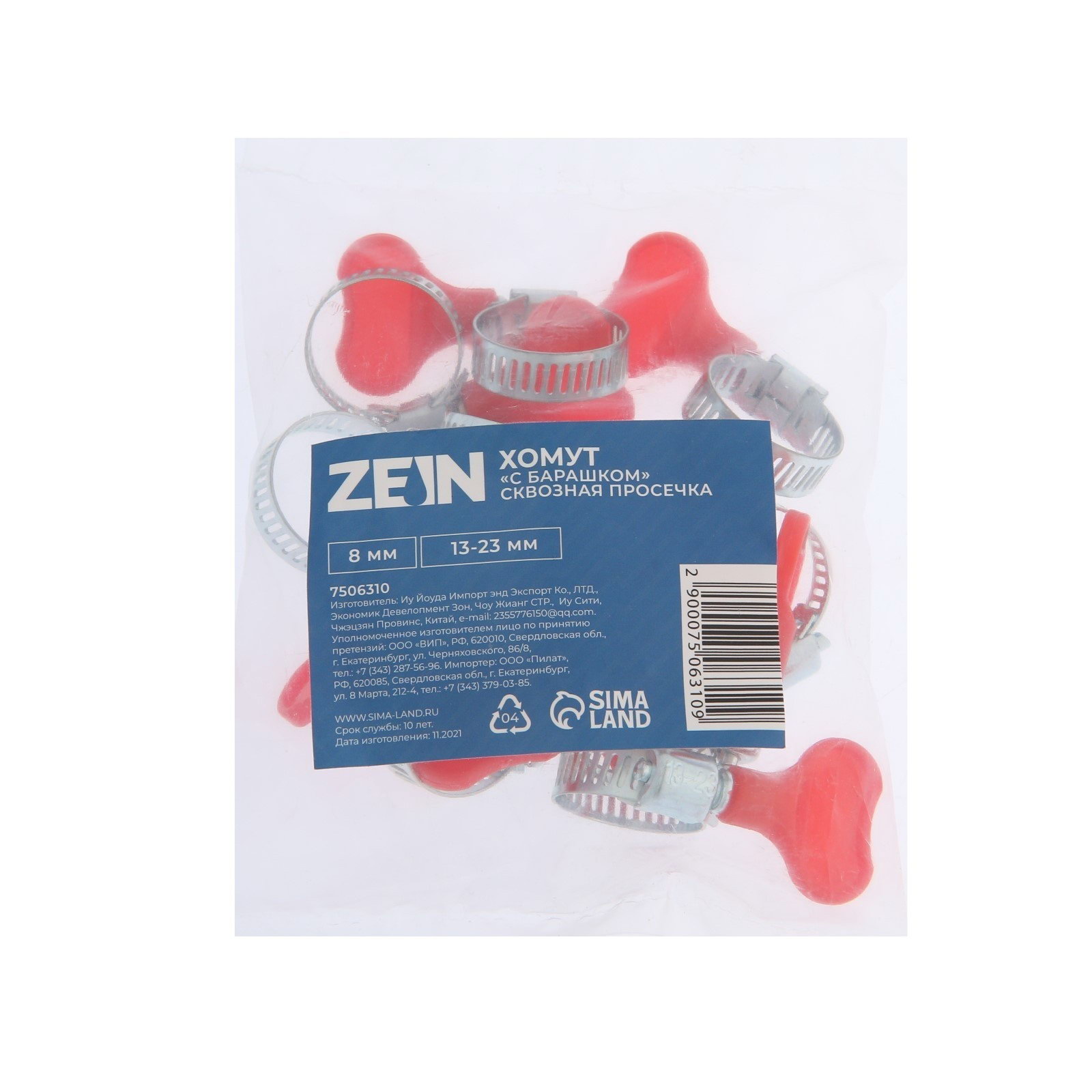 Хомут червячный с "Барашком" сквозная просечка, диаметр 13-23 мм, оцинкованный, 0.8x1.3x0.8 см., ZEIN, Китай