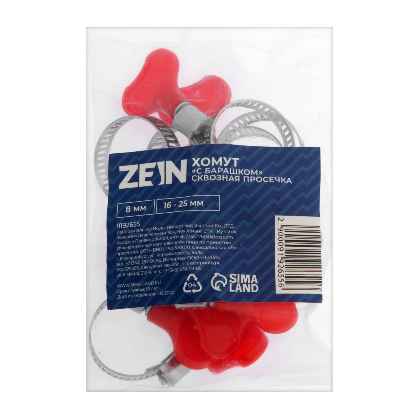 Хомут с "Барашком" engr, сквозная просечка, диаметр 16-25 мм, ширина 8 мм, 0.8x1.6x0.8 см., ZEIN, Китай