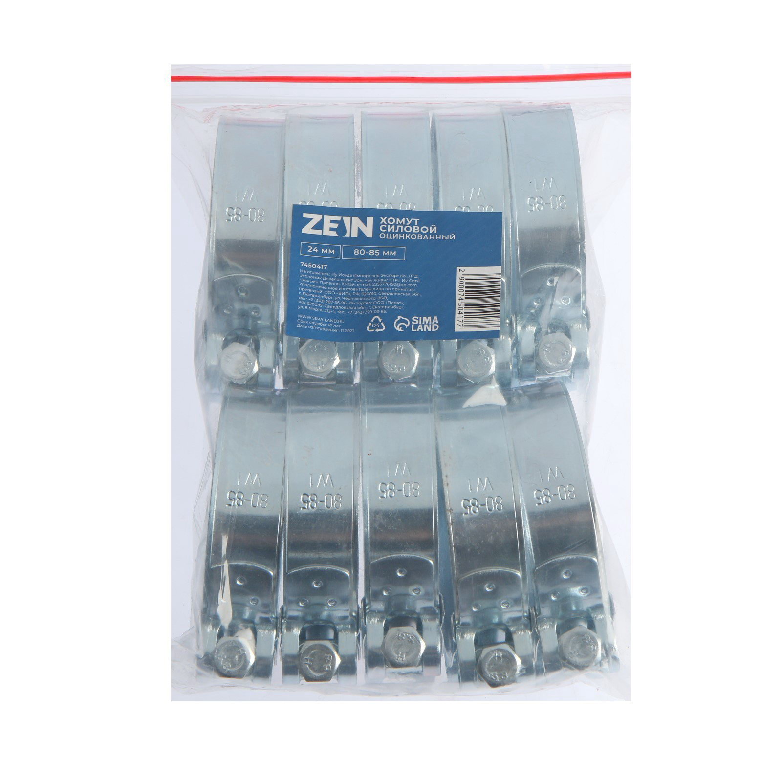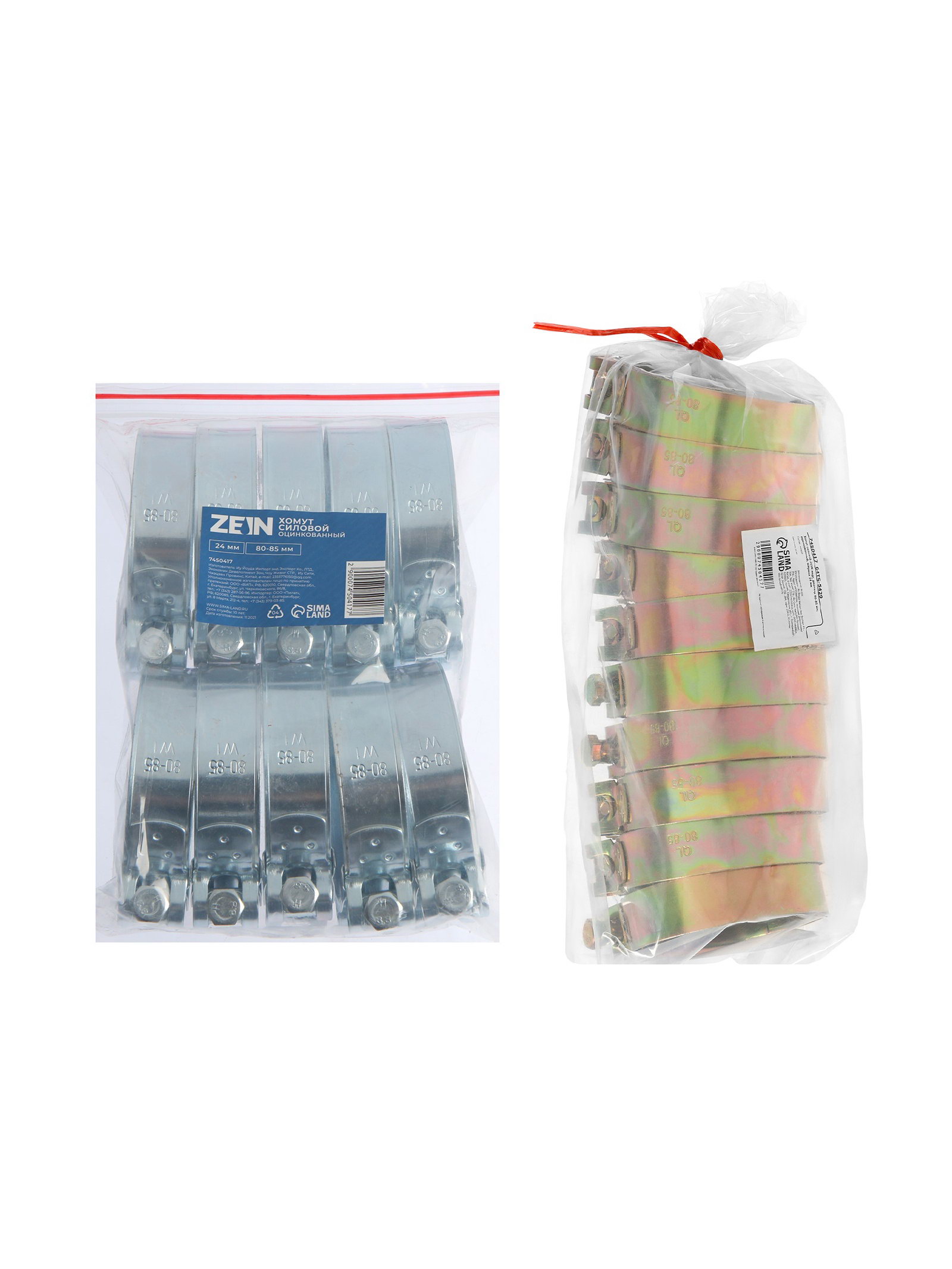 Хомут силовой engr, диаметр 80-85 мм, ширина 24 мм, оцинкованный, 2.4x8x2.4 см., ZEIN, Китай