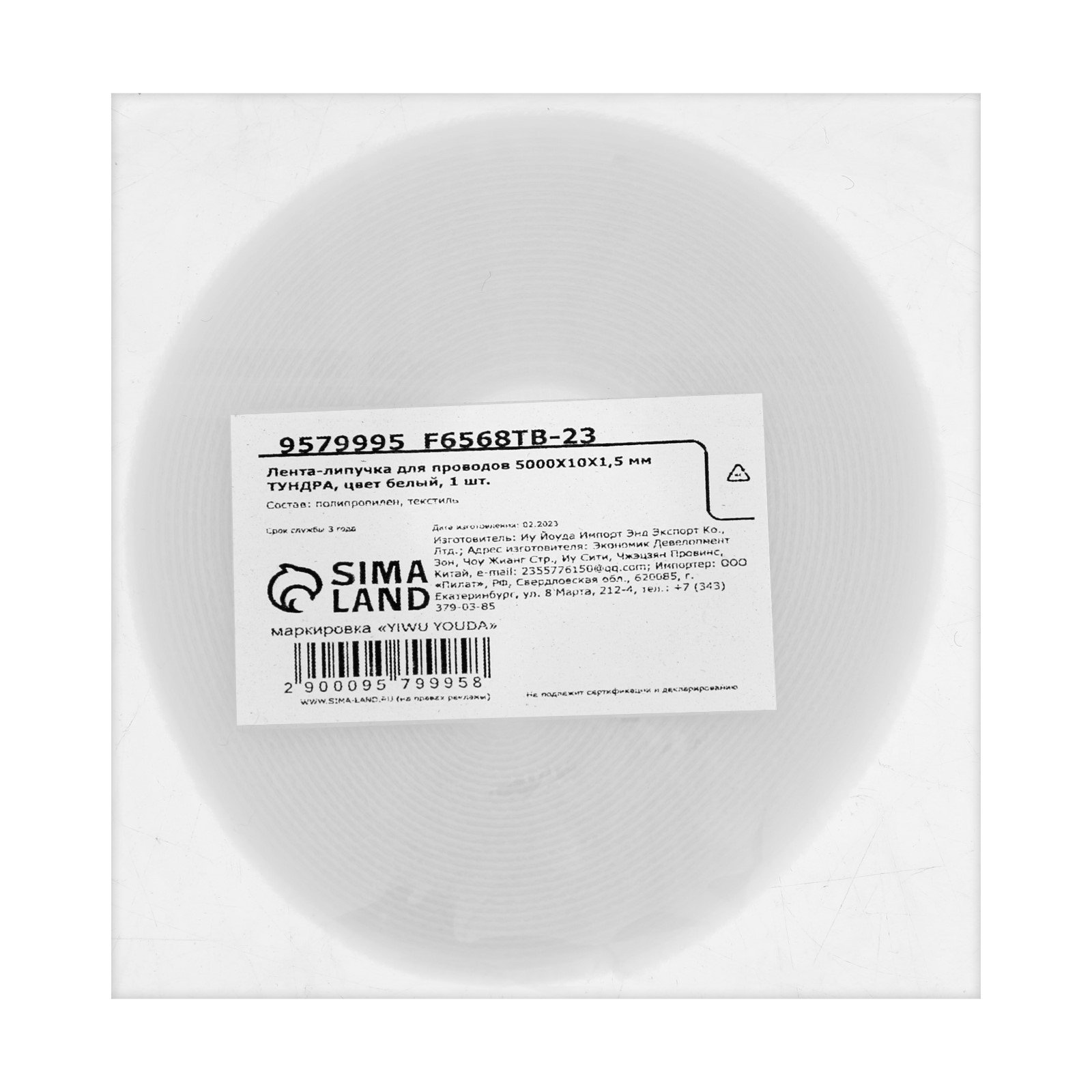 Лента-липучка для проводов 5000x10x1.5 мм белая, 1 шт., 1x500x0.1 см., ТУНДРА, Китай