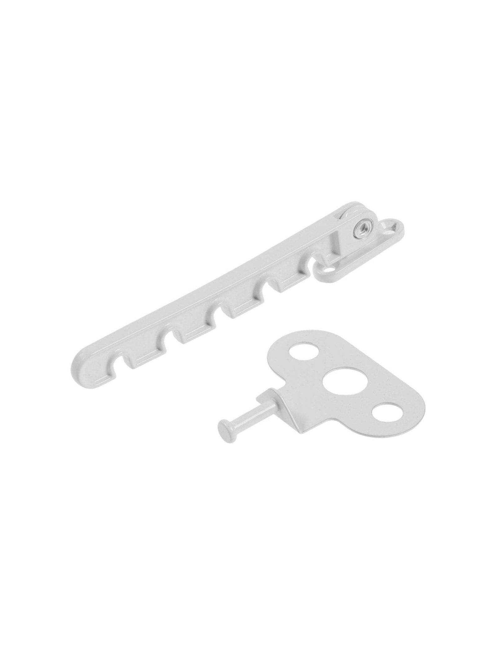 Размер упаковки: 9.5 x 4 x 17.5 см. Гарантийный срок, мес.: 6 tnved: 8302415000 Количество пазов: 5 Цвет: Белый Полный комплект металлических ограничителей для всей квартиры! Ограничители открывания "Тундра" металлические (5 шт.) – это набор цельнометаллических гребёнок с пятью позициями фиксации. Устройства создают систему контролируемого проветривания и повышенной безопасности для всех окон.