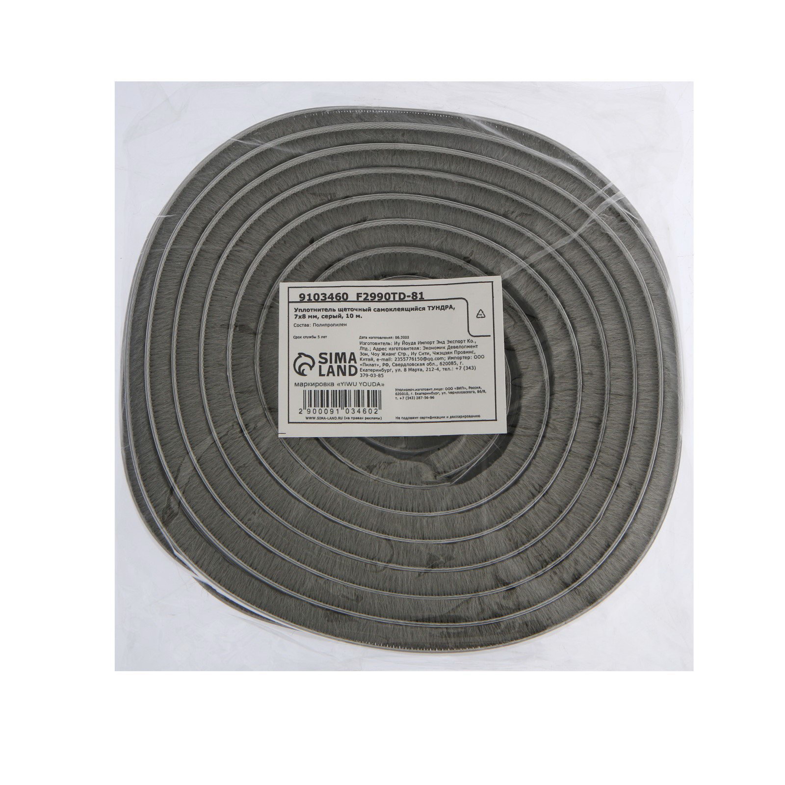 Уплотнитель щеточный самоклеящийся 7x8 мм, серый, 10 м, 17x18x2.5 см., ТУНДРА, Китай