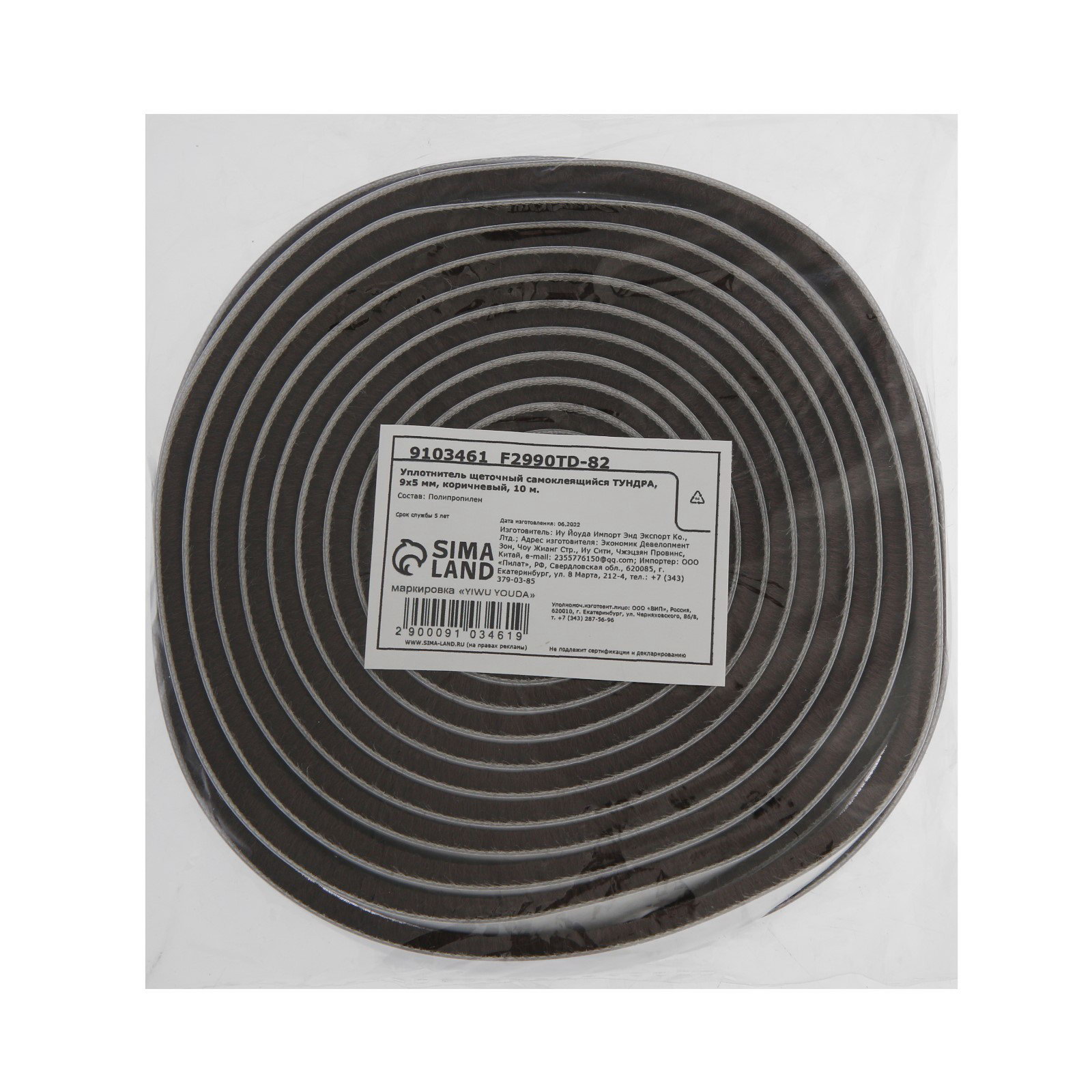 Уплотнитель щеточный самоклеящийся 9x5 мм, коричневый, 10 м, 15.5x16.5x3 см., ТУНДРА, Китай