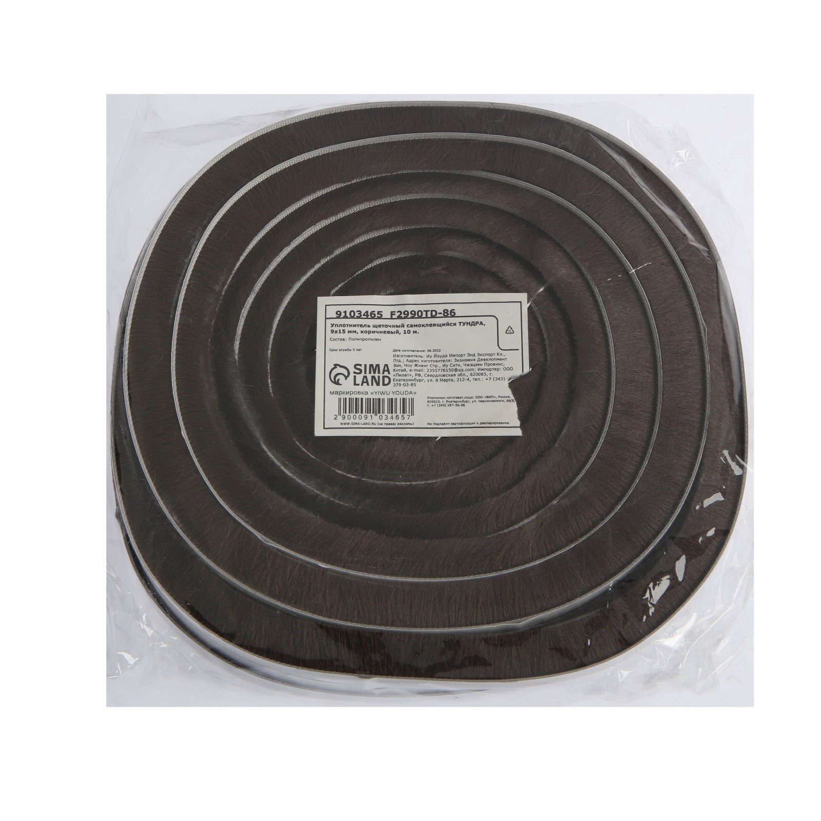 Уплотнитель щеточный самоклеящийся 9x15 мм, коричневый, 10 м, 20.5x20.5x3 см., ТУНДРА, Китай