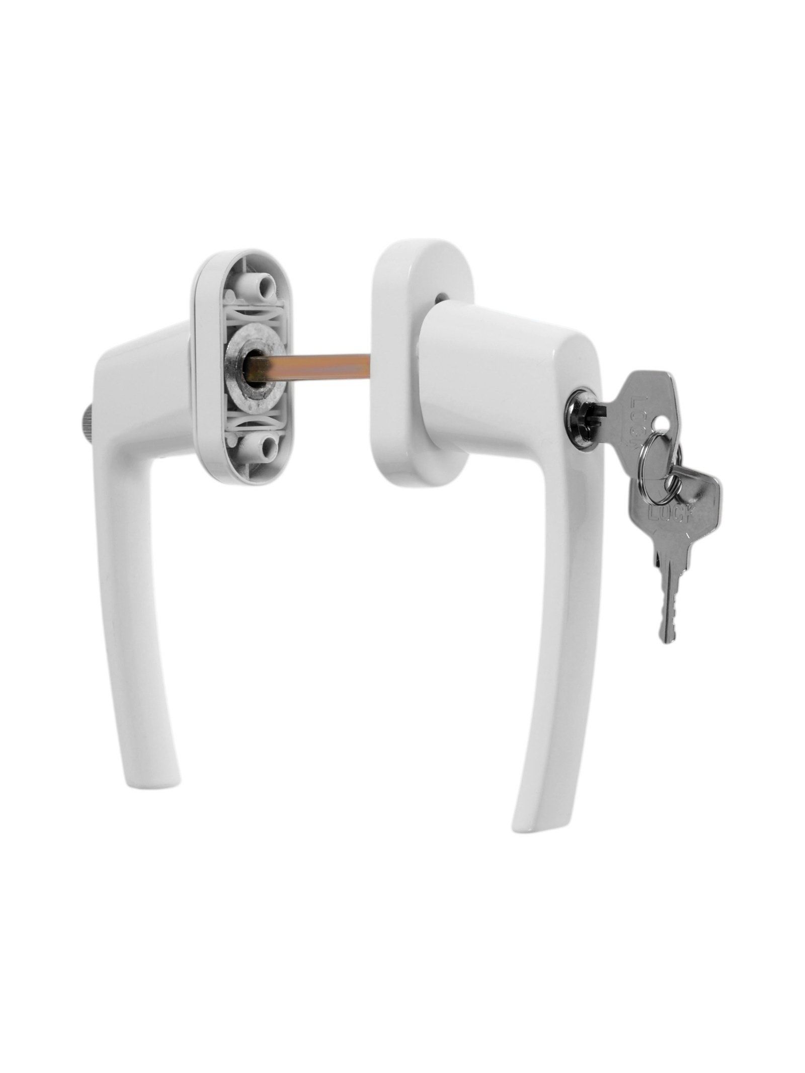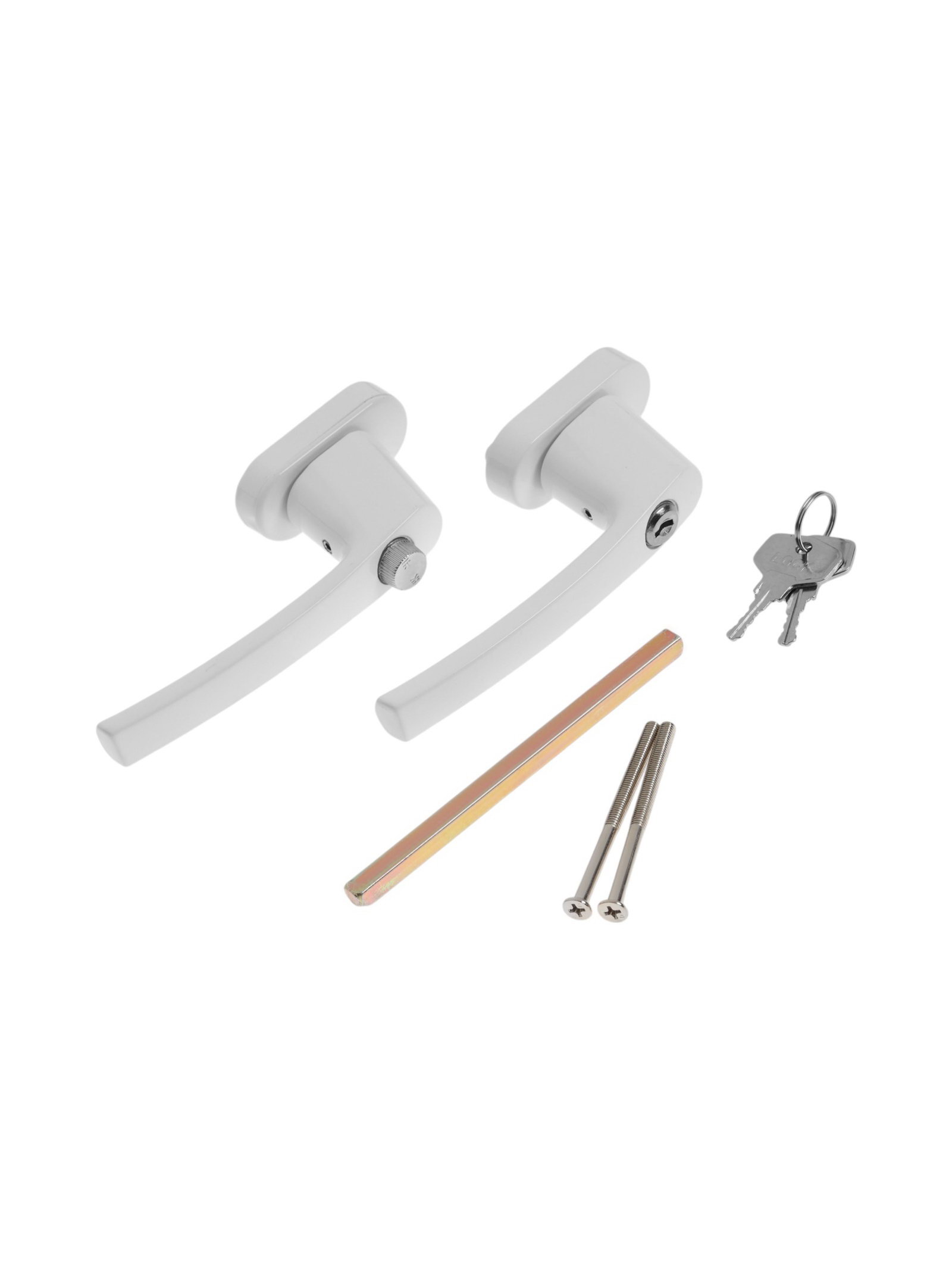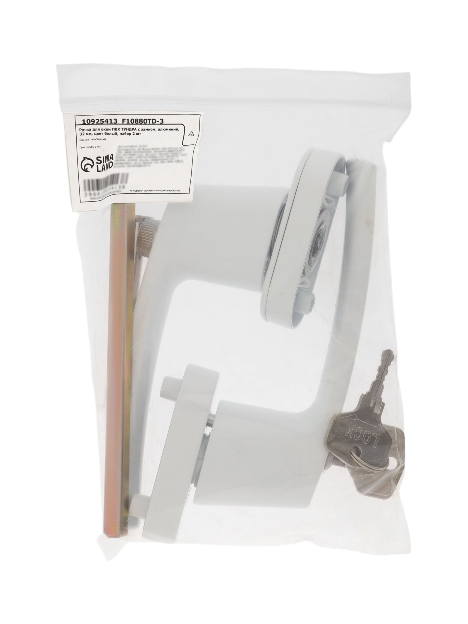 Ручка для окон ПВХ с замком, алюминий, 32 мм, белая, набор 2 шт., 8x15x6 см., ТУНДРА, Китай