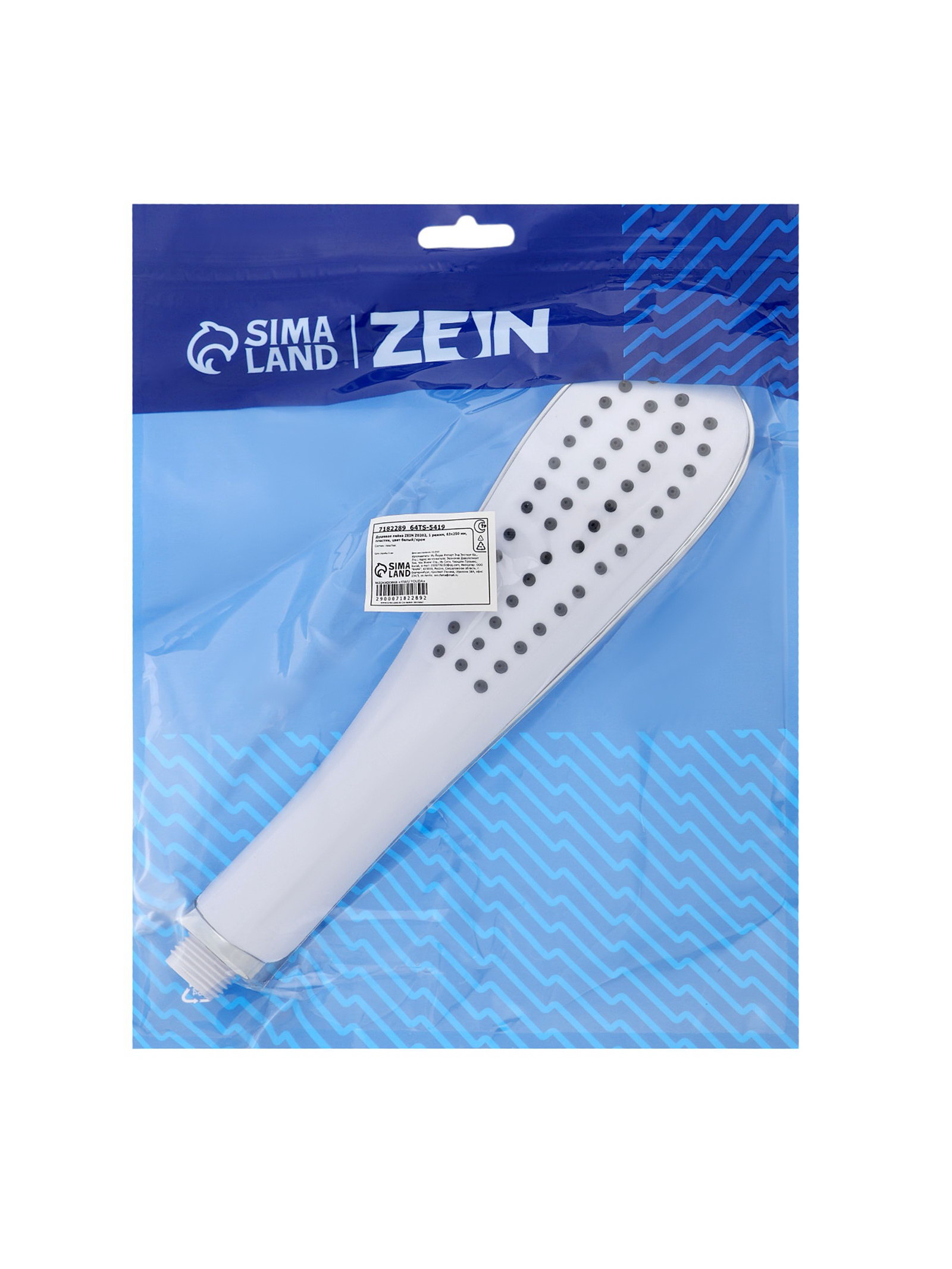 Душевая лейка Z0202, 1 режим, 63x250 мм, пластик, цвет белый, хром, 6.5x25x3.5 см., ZEIN, Китай