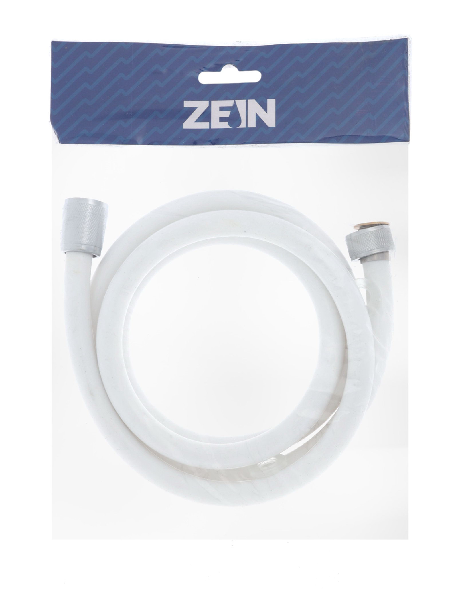 Душевой шланг Z49PSW, 150 см, усиленный в оплетке, гайки цинк, втулка латунь, белый, Имп/Имп, 2x150x2 см., ZEIN, Китай