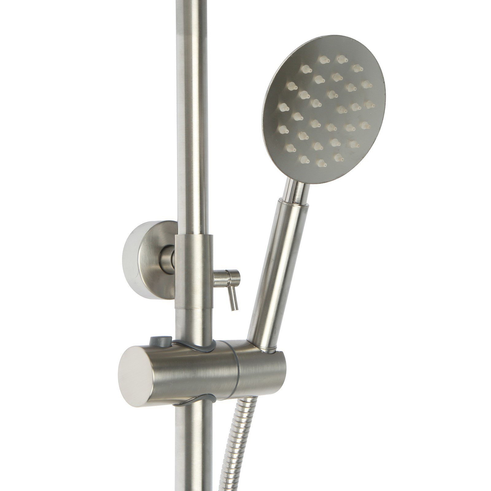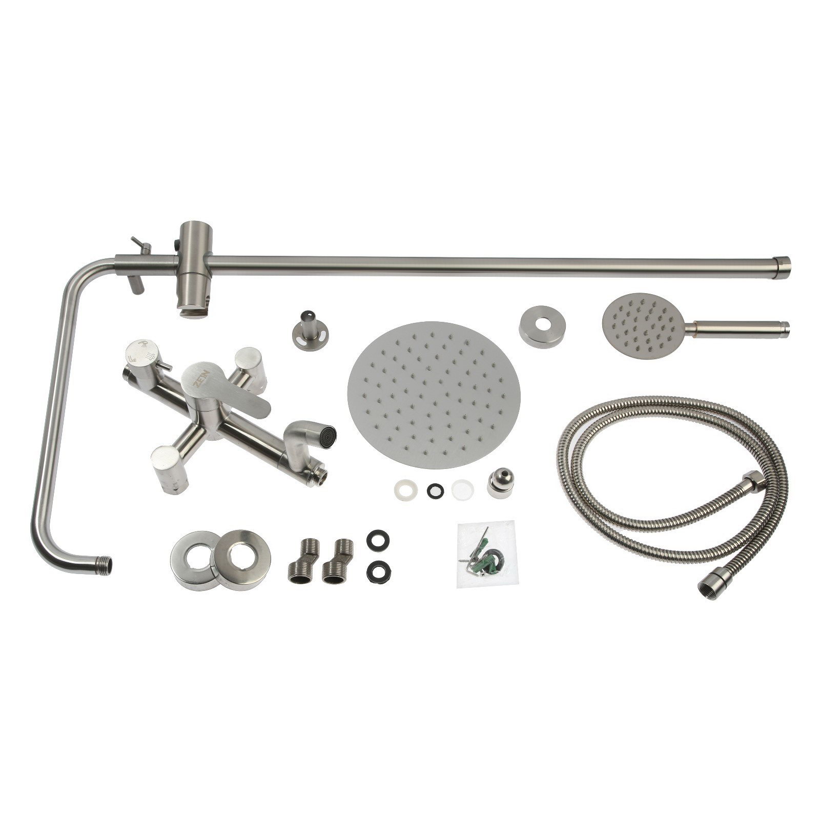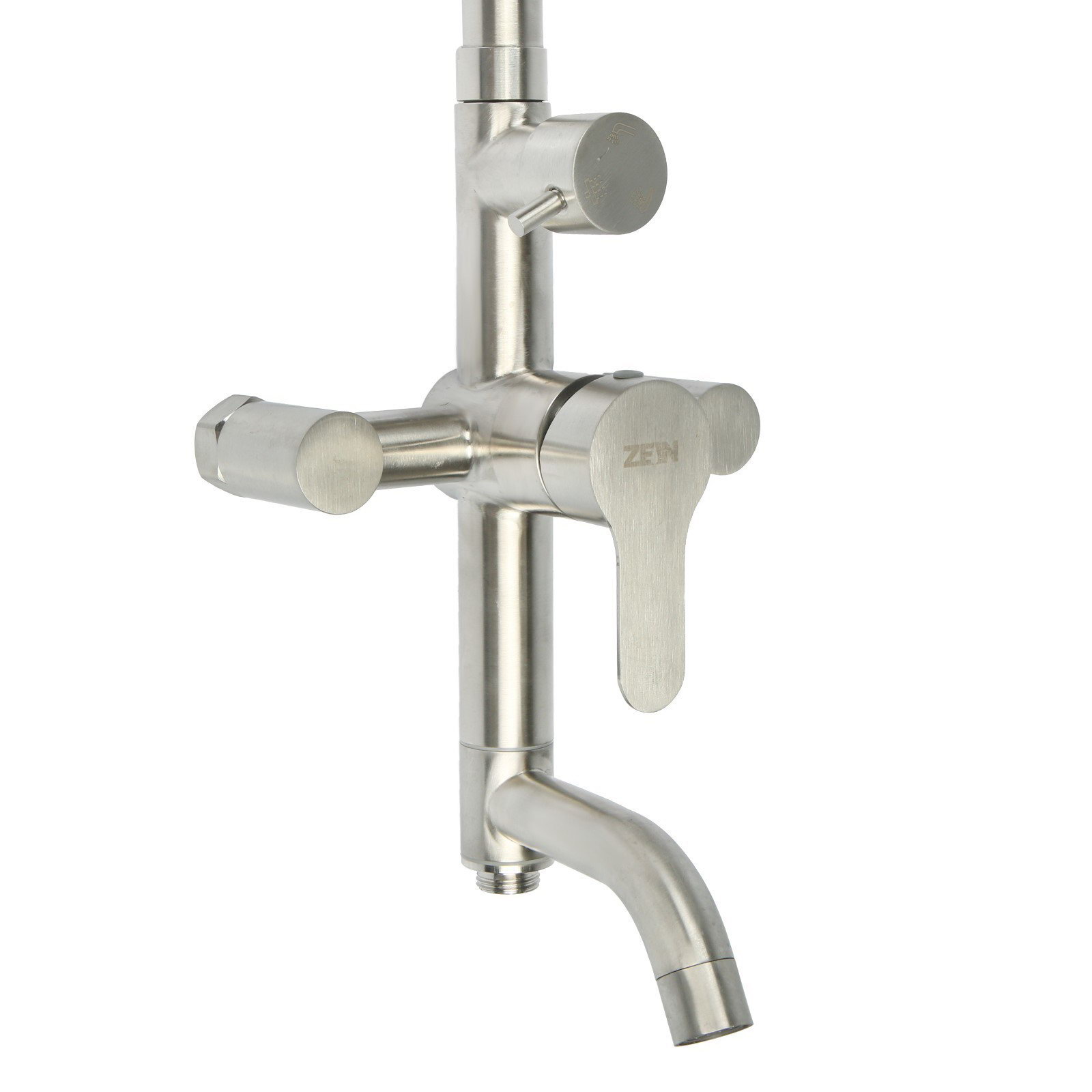 Душевая система Z1008, смеситель, тропическая и ручная лейка, стойка, круглая, сатин, 11.5x72x40.5 см., ZEIN, Китай
