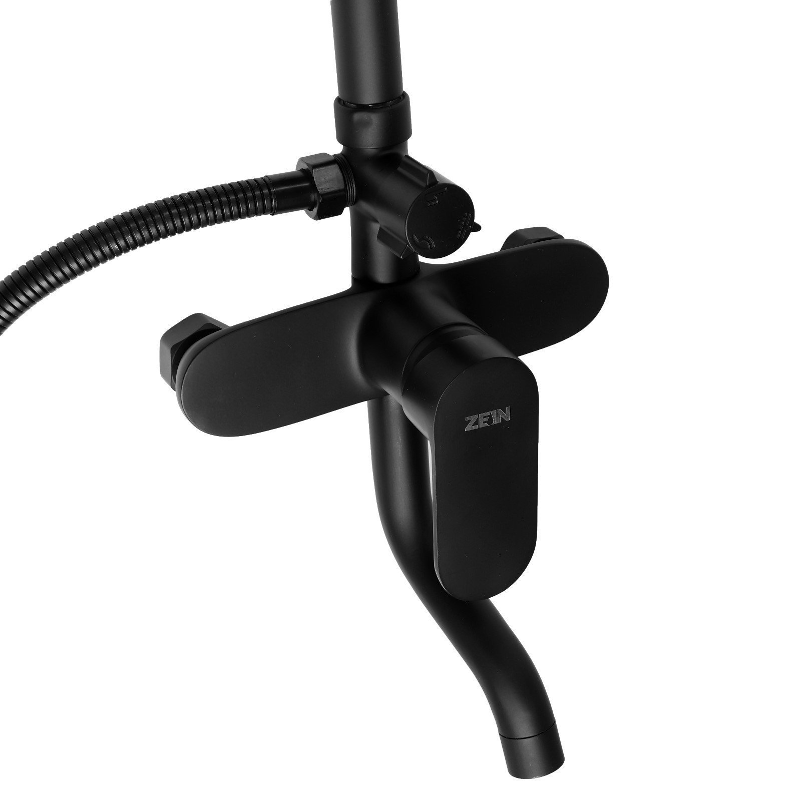 Душевая система Z3860, смеситель, тропическая и ручная лейка, полка, латунь, черная, 31x72x11.5 см., ZEIN, Китай